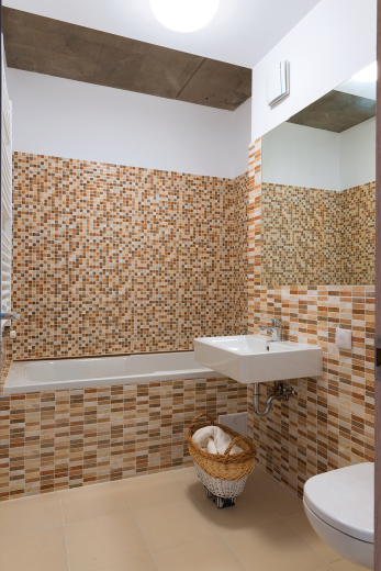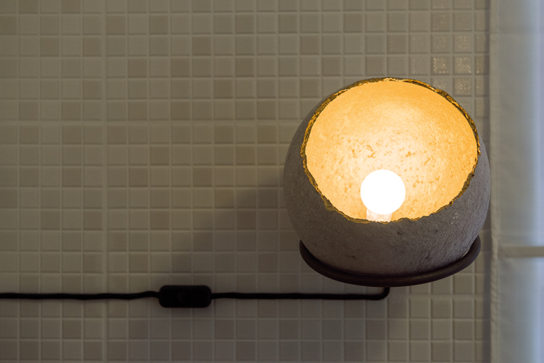 Corpul de iluminat reuneşte „bule de săpun” din sticlă, conferind o notă jucăuşă spaţiului. Oglinda este încadrată din două părţi de către o ramă lată cu iz de scoarţă de copac. Finisajele merg pe ideea de natural, materialele folosite fiind lemnul, pânza sau răchita. În spatele canapelei a fost poziţionată o rogojină vopsită în alb, iar la capul patului se profilează o pânză. Amenajarea este completată de selecţia de obiecte aparţinând în mare parte unor designeri şi artişti români: acuarelele sunt semnate de Cătălin Rulea, covorul dintre pat şi mobilierul TV a fost creat de Iulian Mihalachi, veioza Roca din bucătărie e reali-zată de Atelier A4, perna cu iepuraş din living poartă designul Irinei Neacşu, iar coşul din baie de sub lavoar şi literele din bibliotecă sunt de la Visuell.