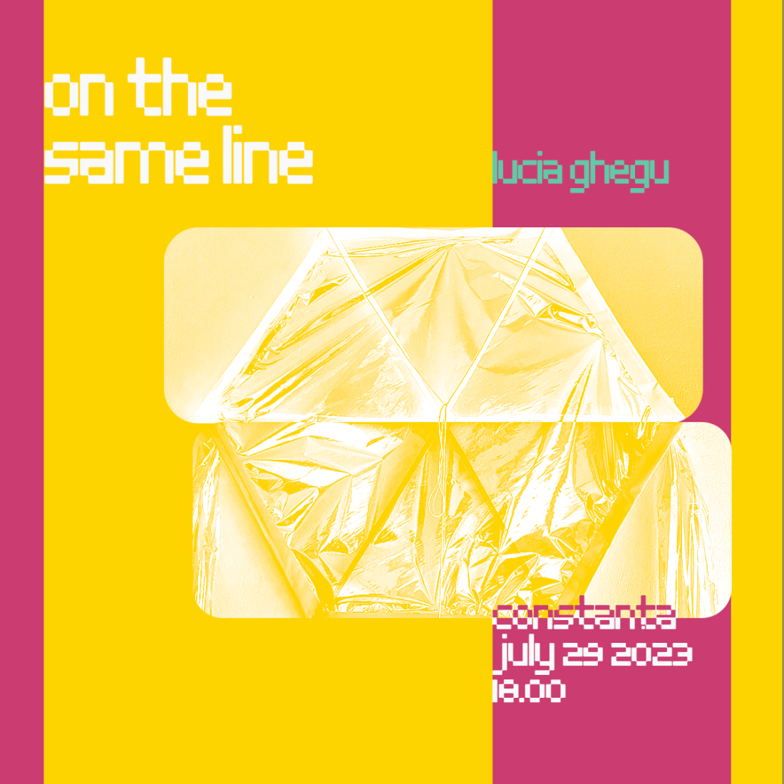Proiectul Luciei Ghegu este inspirat de un gest anterior din perioada pandemiei. În timpul lockdown-ului din 2020, artista a înălțat un zmeu de la fereastra apartamentului său, în încercarea de a ajunge la vecinii săi. Un gest poetic și puternic, care servește drept o reamintire simbolică a libertății și a relațiilor noastre interumane fragile dincolo de distanța fizică. Pentru proiectul On the Same Line, Lucia Ghegu își însușește propriul gest și îl reproduce în Constanța. Această trecere de la privat la public este un element crucial al proiectului, pentru că nu doar reflectă perioada de timp care a afectat puternic schimbul emoțional și fizic dintre oameni, ci îi aduce direct pe aceștia din nou împreună.