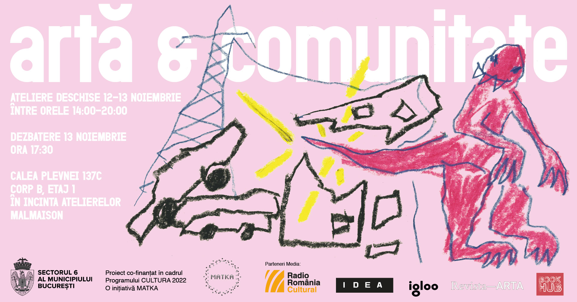 Artă și Comunitate este un proiect al Asociației MATKA, co-finanțat de Primăria Sectorului 6 al Municipiului București în cadrul Programului Cultura 2022. Conţinutul acestui proiect nu reprezintă în mod necesar poziţia oficială a Primăriei Sectorului 6 al Municipiului București. Pentru informații detaliate despre programul de finanțare al Primăriei Sectorului 6 al Municipiului București, puteți accesa www.primarie6.ro