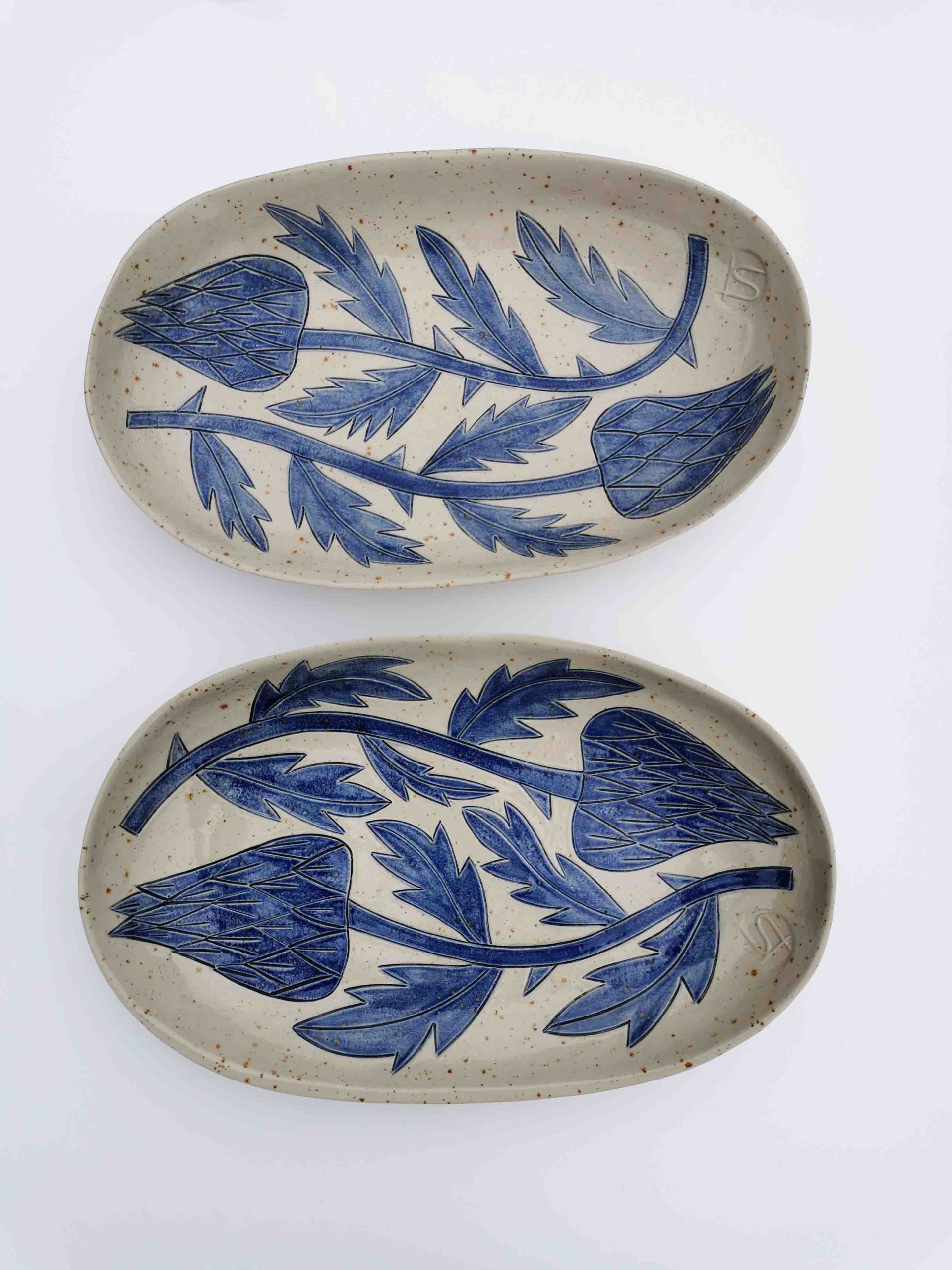 Albastrul cobalt pe care îl folosesc este o culoare magică, prețioasă, și în spatele acestei culori stau multe povești în istoria ceramicii. A fost întotdeauna culoarea cea mai dorită și nu a egalat-o alta în frumusețe (în trecut oxidul de cobalt era prețios ca aurul).