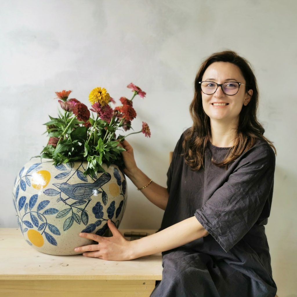 Din marea de ceramică contemporană frumoasă care se creează acum în România, în atâtea tehnici, stiluri și registre, obiectele tale se disting într-o clipă, printr-o anume narativitate și un fel de mitologie vizuală, ca să-i zic așa. Ce surse și referințe sunt „topite” în ceramica ta? Care e povestea acestor motive vegetale, a acestor culori inconfundabile?