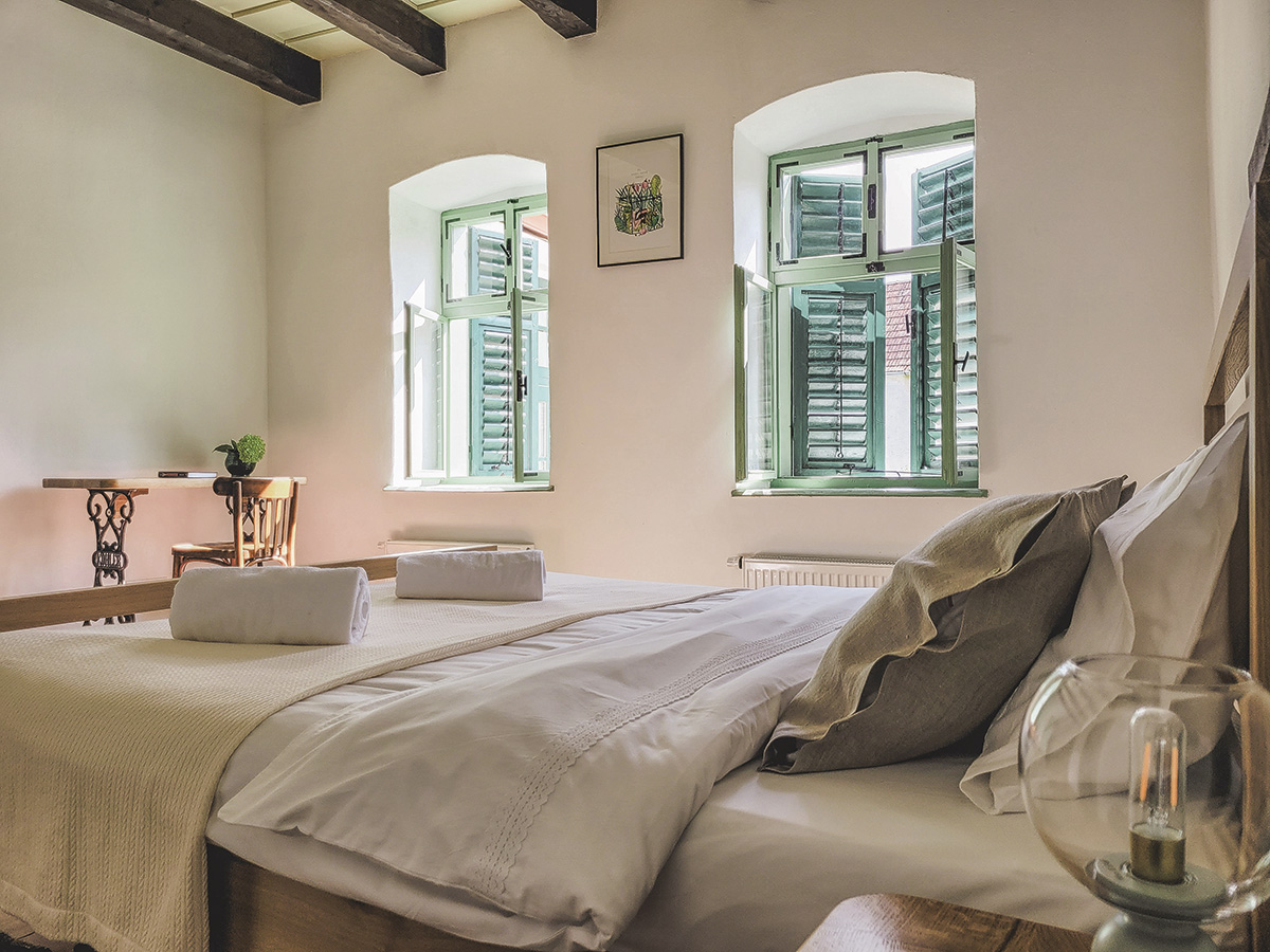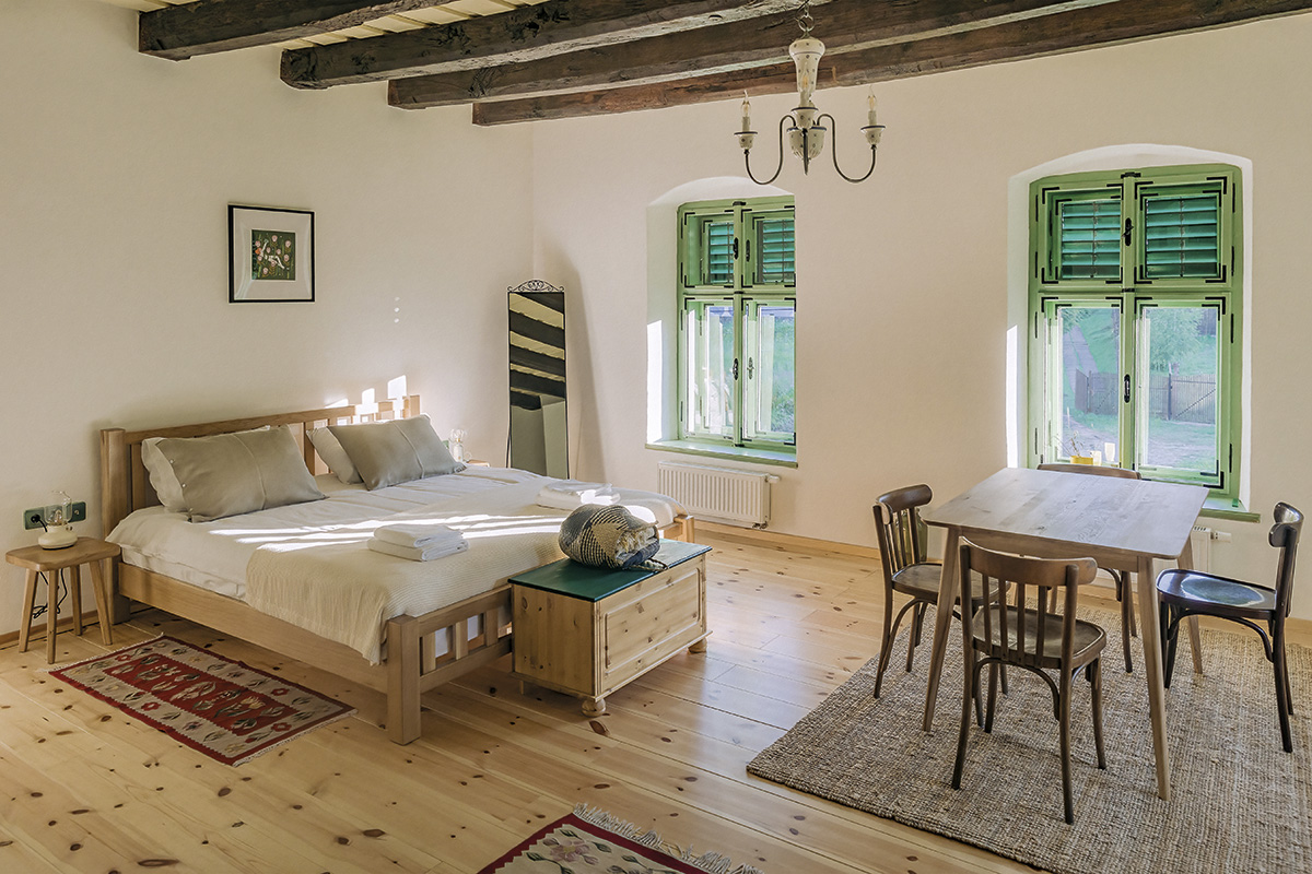 Suntem la AlmaCalma Guesthouse, unde Irina Groza și Robert Trică, bucureșteni îndrăgostiți de ani buni de Transilvania, au convertit o casă veche într-o oază de bine, unde cel mai mare privilegiu și bucurie este, după cum spune Irina, să nu faci nimic. Restaurarea a fost, așa cum se întâmplă de obicei, un drum cu provocări și plin de nouă învățătură, însă le-a oferit ocazia să cunoască oameni speciali (arhitecți, meșteri, artiști) care i-au ajutat să pună în valoare elemente ale personalității casei cum ar fi, spre exemplu, grinzile din stejar ale tavanului. Ochiul estetic sensibil și zvelt antrenat – Irina și Robert sunt fotografi (Cromatica Photography) – le-a fost de ajutor în amenajarea de interior, realizată chiar de ei. O poveste care merită trăită plenar la Alma Vii, iar pentru deschiderea apetitului, ne-a dezvăluit mai multe Irina.