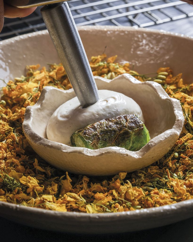 Să vorbești despre gusturile unei regiuni e un demers de căutare a esențelor, pe care ne face plăcere să îl repetăm cu fiecare explorare. În cazul Munteniei am ales să ne oprim La Hambar, restaurantul special al unui domeniu la fel de special, Singureni Manor, conturat sub blânda ocrotire a unui codru de stejar, la mai puțin de o oră distanță de București. Aici, chef Alexandru Dumitru orchestrează resorturile unui meniu fine dining cu specific neo-românesc, care se inspiră din tradiție, din gesturile și datinile bunicilor și, nu în ultimul rând, din seva ingredientelor locului. Experiența culinară este armonios completată de cea a domeniului în sine, cadrul natural influențând și designul interior al restaurantului (semnat de către arh. Andreea Vasilescu). O parte a unui fost grajd de cai a fost astfel convertită în loc de voie bună și gusturi alese, sub auspiciile unei simplități armonioase cu ajutorul unor materiale naturale precum lemnul, teracota, oțelul, calcarul, orzul. Și tot pe o simplitate care scoate în evidență esențele merge și chef Alexandru Dumitru în conturarea meniului, după cum am descoperit din conversația ce urmează.