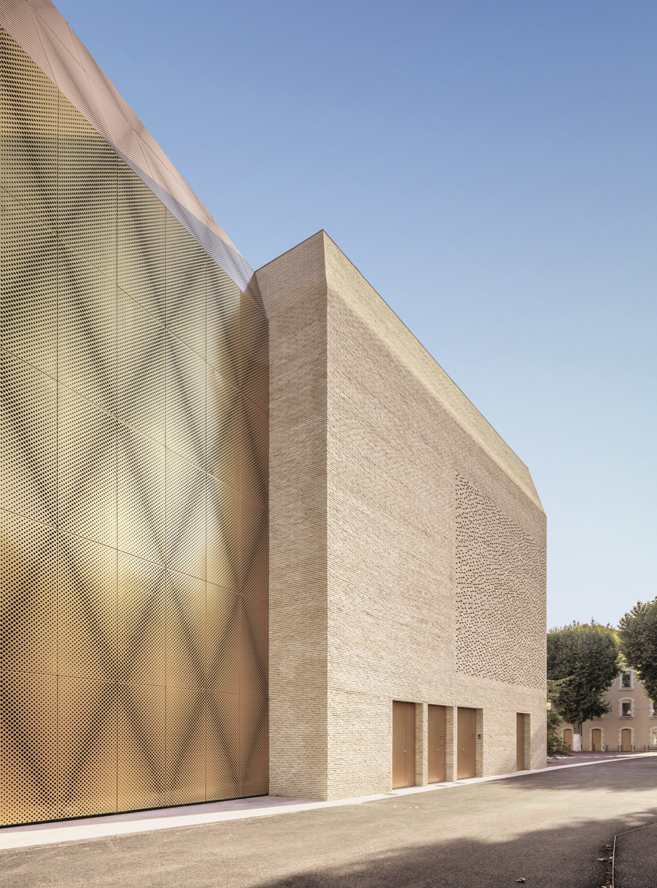 Noul monolit cinematografic și-a găsit loc în partea de est a complexului, iar intenția a fost nu de a-l ridica ca pe elementul nou apărut în designul riguros de secol XIX, ci ca pe ceva „etern”, bine conectat cu restul. A apărut astfel un volum luminos și în același timp solid, care împrumută silueta celorlalte clădiri ale ansamblului, folosindu-se de virtuțile cărămizii, atât de prezentă în arhitectura tradițională din Cahors. Și în cazul culorii clădirii, echipa a mers tot pe axa vechi-nou, alegând o nuanță care face trimitere la piatra naturală a regiunii.