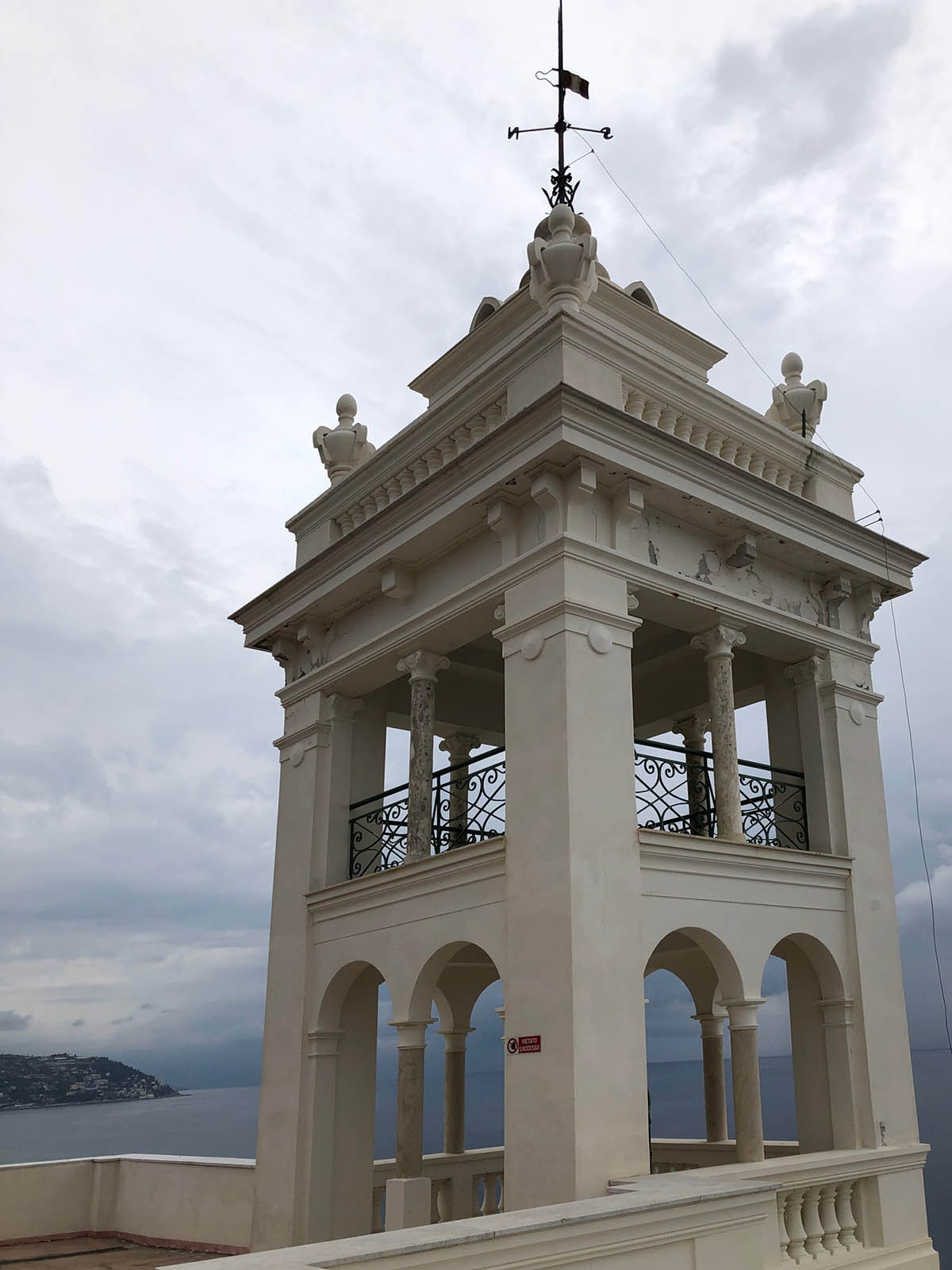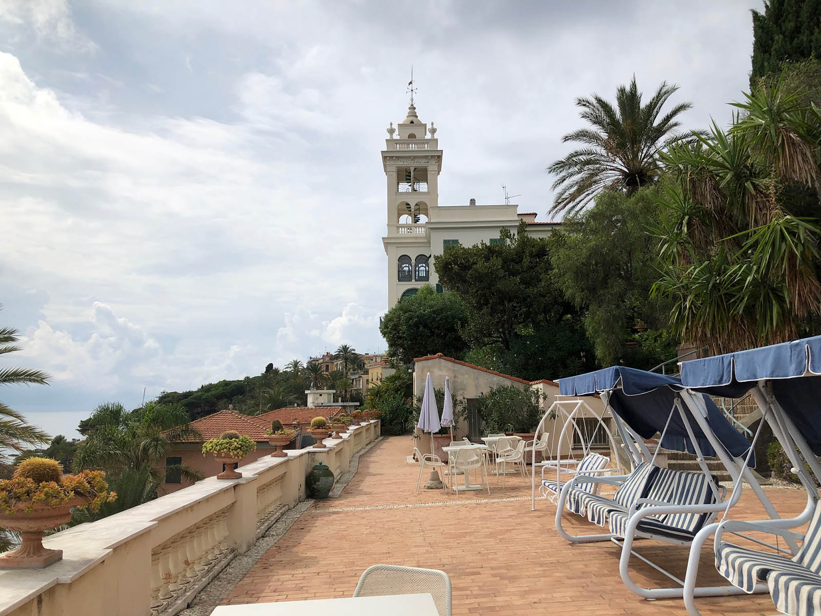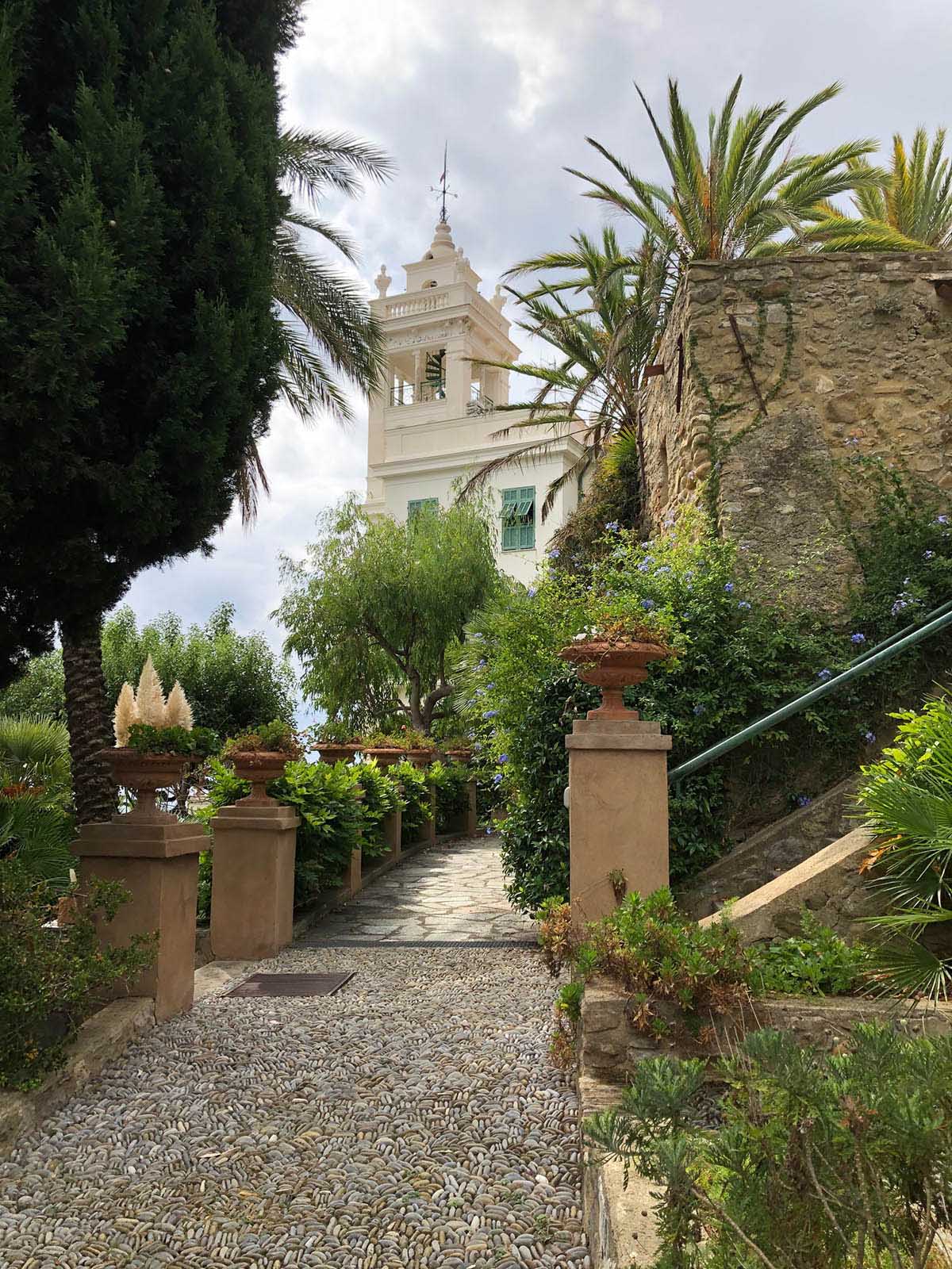 În Bordighera a găsit un teren cu deschidere nemijlocită spre mare, ocupat însă de o capelă utilizată ca școală de băieți. Pentru a-l obține, a oferit primăriei pe lângă o sumă considerabilă și un proiect pentru o nouă școală locală.