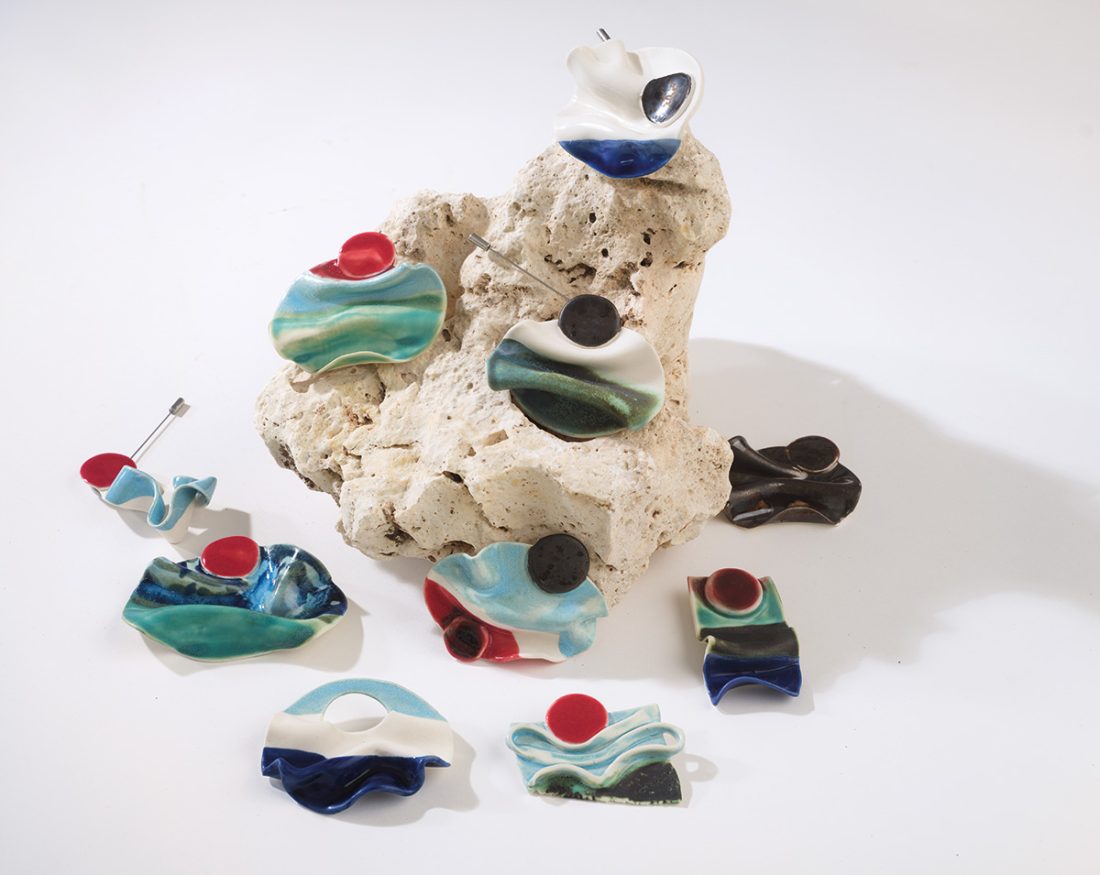 Ceva inedit care m-a inspirat în realizarea colecțiilor de până acum este tehnica ceramicii în sine, un mediu nou pentru mine, dar pe care îl explorez cu multă fascinație și determinare. Am pornit de la forme mici, turnate în șticluri, ce s-au concretizat în broșe și apoi în instalații care s-au extins în forme mai elaborate. Îmi place să realizez obiecte care să aibă o utilitate și un efect imediat, precum broșe, coliere, platouri ș.a.m.d. Am o zonă de obiecte al căror scop este înfrumusețarea estetică, atât umană, cât și spațială. Unul dintre cele mai importante lucruri pentru mine este gustul estetic bun, cum îl hrănim și dezvoltăm constant. De aceea aleg să fac lucrări care ajung la oameni cât mai diverși și care le integrează în rutina vieții lor.