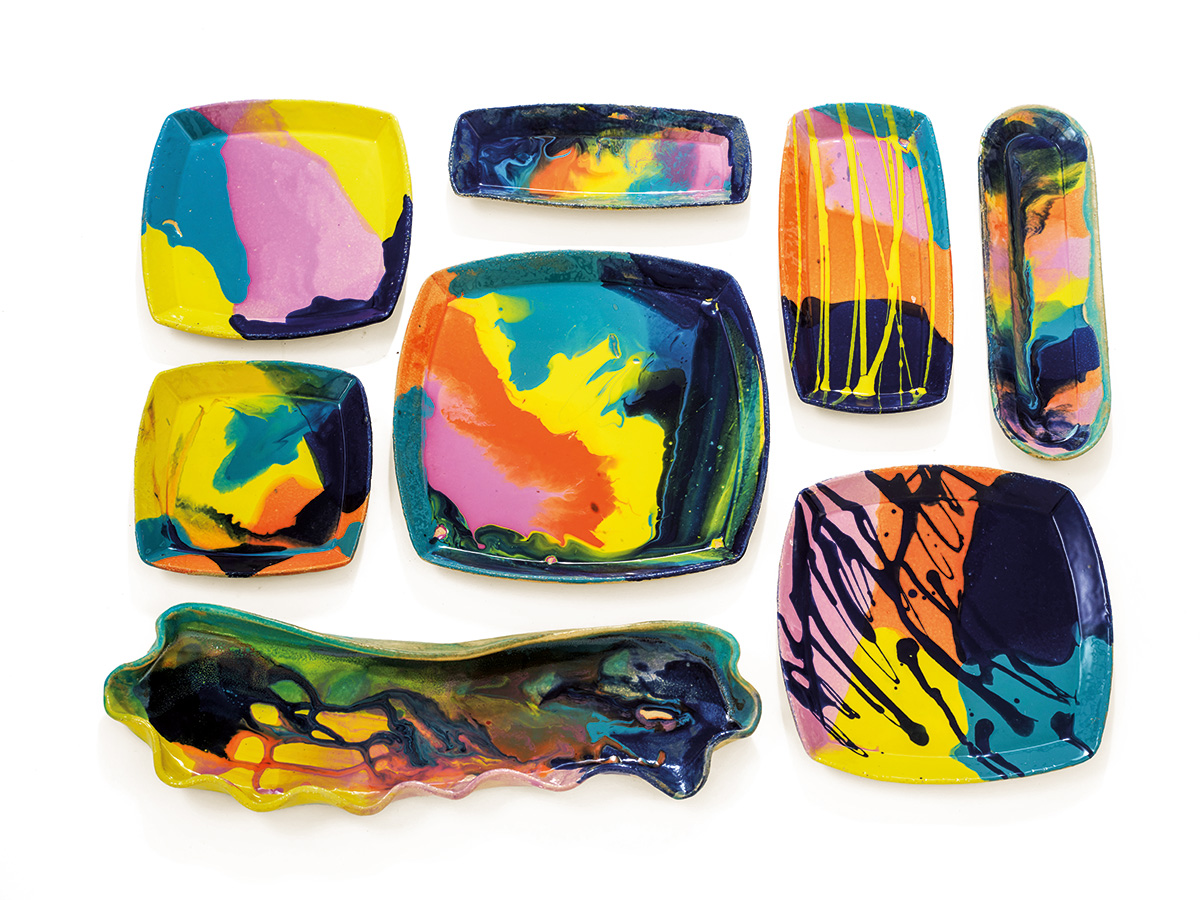 De multe ori mă gândesc că, în mileniul vitezei și al consumerismului, eu mi-am găsit această pasiune legată de ceramică ce impune un proces complex și de lungă durată. E interesant cum poți obține multiple exprimări în acest mediu, atât prin varietatea materialelor, cât și prin maniera de lucru și de abordare. Aș zice că eu încă fac ceramică într-o tehnică relativ de bază, prin care pot experimenta și obține multe efecte și produse. Folosesc porțelan lichid sau solid și gresie de mai multe materialități și texturi. Procesul de lucru, așa cum spuneam, este unul complex. Practic, în urma unor schițe generezi un obiect care necesită o uscare în profunzime, iar aceasta poate dura între câteva zile și două săptămâni sau poate chiar mai mult. Ulterior se face o primă ardere de biscuitare la 900 de grade, iar în cea de-a treia zi se deschide cuptorul, la 60 de grade ideal, și cu ajutorul glazurilor se poate decora obiectul cu culoare sau nu. Ceramica se poate păstra și mată neglazurată, se poate glazura cu glazură transparentă pentru a obține luciul și pentru a pune în evidență materialul folosit, care poate avea diverse inserții sau o cromatică diferită. În general, cumpăr glazuri gata preparate cărora le adaug apă sau pigmenți pe care îi prepar cu glazură transparentă după o rețetă precisă, dar care poate avea inflexiuni de procentaj al gramajelor astfel obținând alte nuanțe de culori.