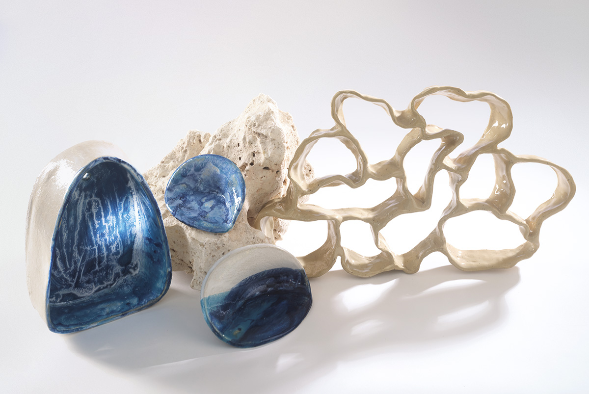 Întotdeauna am fost atrasă de varietatea naturii și dintotdeauna strâng mici elemente naturale pe care le întâlnesc în călătoriile mele sau ieșirile în natură. Mă fascinează structurile cromatice și compozițiile vaste găsite în natură. Forme moi, fluide, rigide, rizomatice, abrazive, forme care îți provoacă simțurile și curiozitatea pentru mediul complex și fragil al naturii. Asemănătoare naturii, ceramica este totuși un mediu fragil, iar împreună creează un dialog puternic.