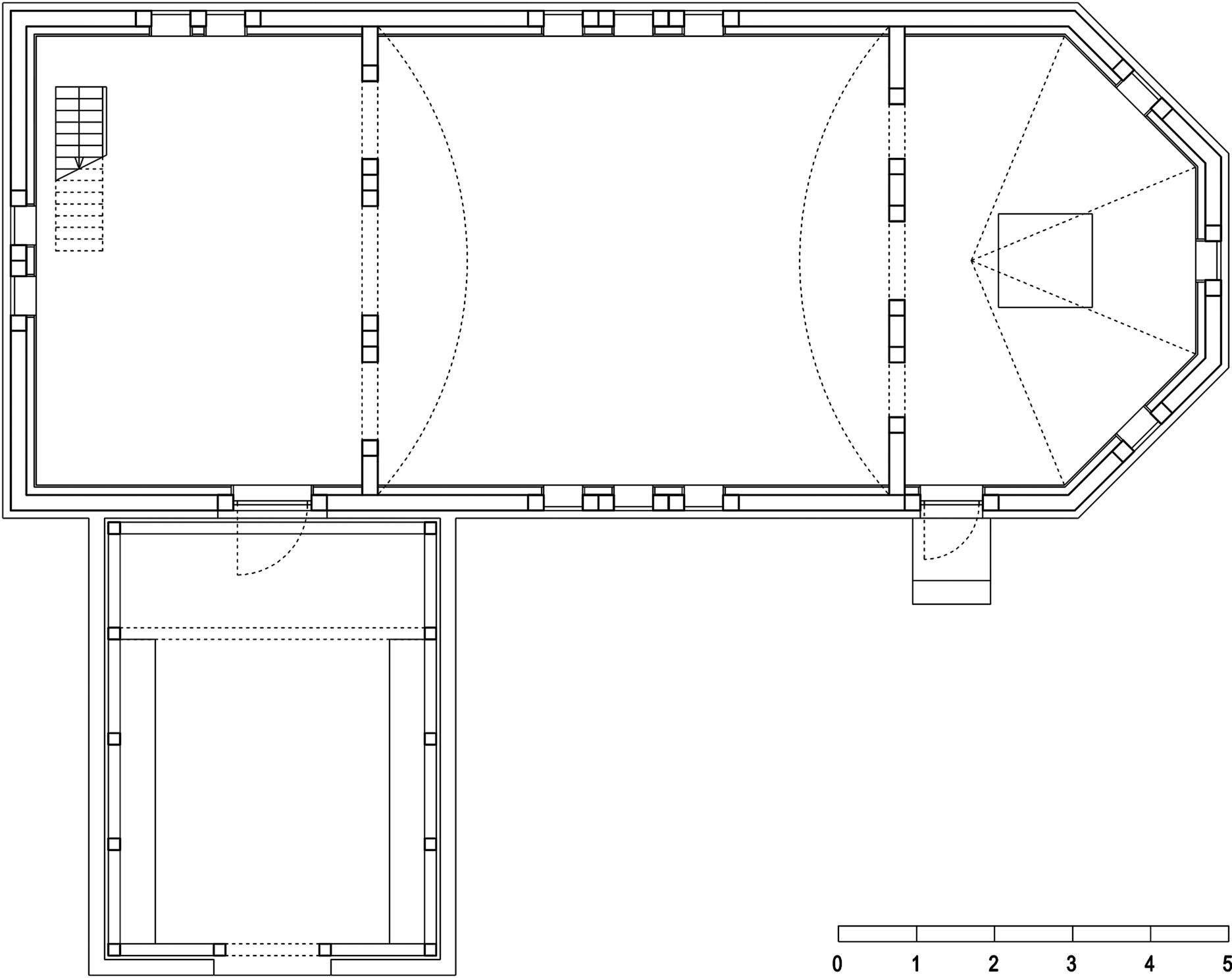 Am gândit biserica și sub semnul unei tripartiții orizontale, a trei registre: un registru de bază care reinventa soclul – fiind un paraclis universitar pentru puțini studenți, nu se impunea construirea unei structuri cu o siluetă zveltă, așa că am renunțat la o bază pe care biserica să se înalțe și am propus un soclu zidit, dar care face parte din spațiul interior; pe el se ridică registrul al doilea, al pereților de bârne, urmat de registrul al treilea, acoperișul de șindrilă – banal. Astfel, privită dinspre stradă, din direcția din care studenții intră în micul campus, biserica le apare sub forma acestui raport de straniu-familiar, anacronic: recunosc în ea aspectul de locuință a unei familii de demult de la țară sau de la periferie, purtată sub acest înveliș surprinzător al celor trei registre – cel mineral al soclului, cel masiv al bârnelor și cel al vălului de șindrilă – ce se dezvăluiau treptat printre copaci.