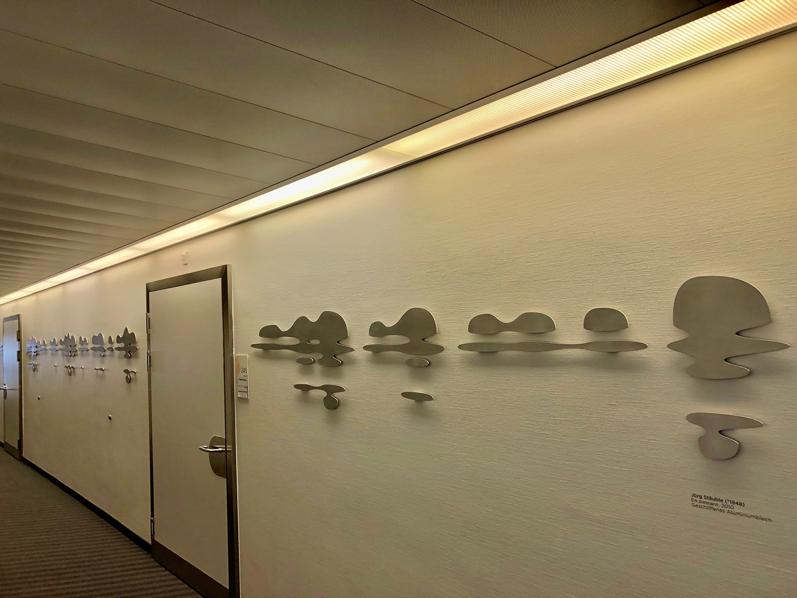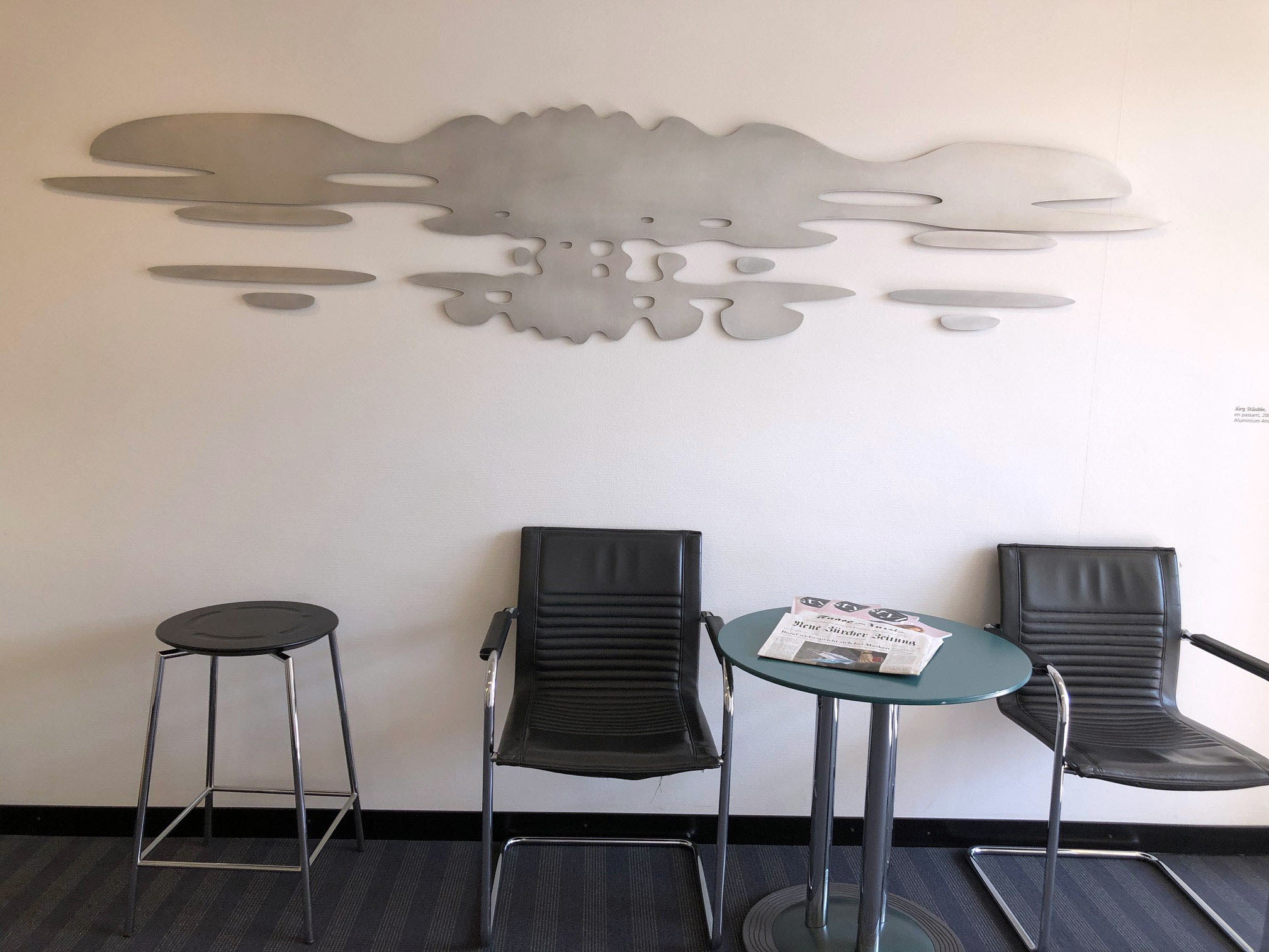 Piesele de aluminiu șlefuit ale artistului Jürg Stäuble au un titlu perfect pentru un loc de trecere „En passant”.