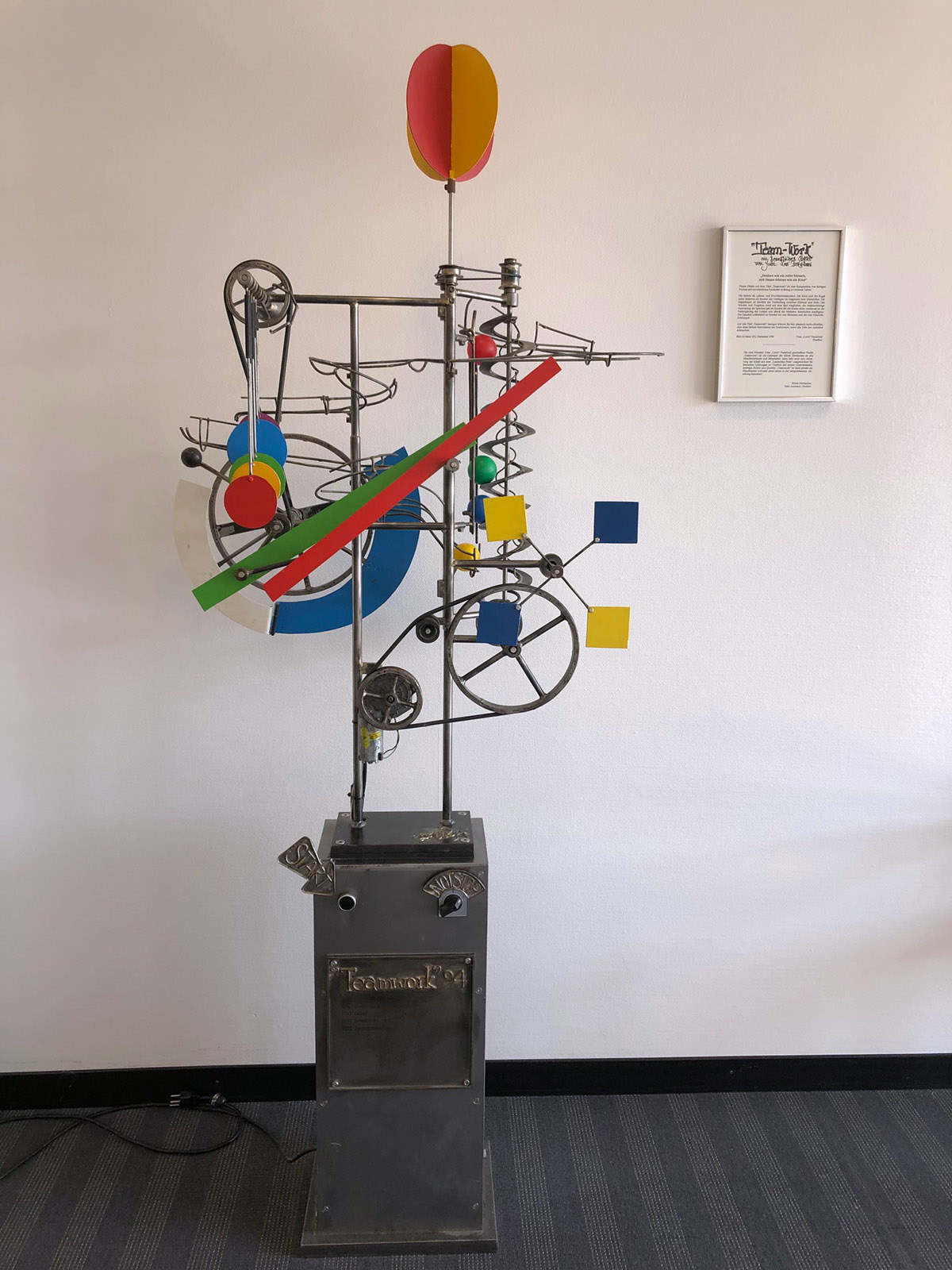 Compoziția ”Team Work” a artistului Yvan Pestalozzi reunește forme și simboluri legate de viață: spirala sugerează fertilitate, cercul și sfera reprezintă antiteza spirit și materie, roata inspiră vremelnicia, razele sunt ale soarelui, iar pătratul include cele patru elemente și semnele cardinale. Lucrarea este itinerantă, pentru că servește ca premiu ”Leadership”. Timp de un an, este găzduită de secția care s-a remarcat printr-o calitate deosebită a activității.