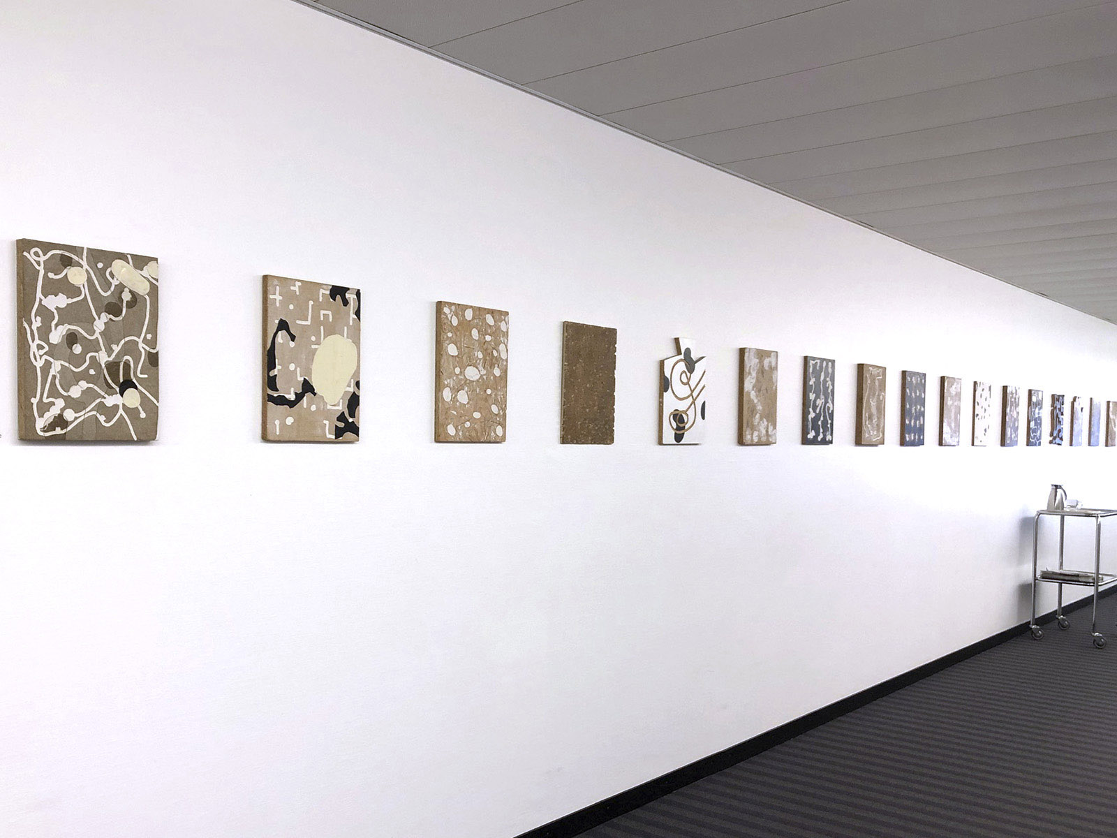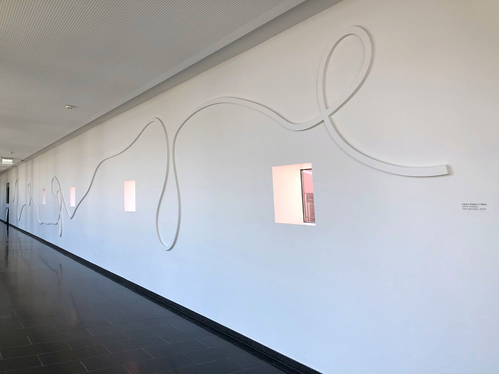 Totul a început de la lucrările artistului Carlos Matter, pe care îl admirasem mai de mult într-o altă galerie. Seria „Farmacia” îmbracă un culoar întreg și conferă spațiului un ritm cadențat și dinamic. Prin contrast, un alt culoar a inspirat artistului o melodie unduită, domoală, melancolică, dar nu mai puțin ornamentală pentru o zonă care altminteri ar fi rămas sterilă ”Silent Shadow”.