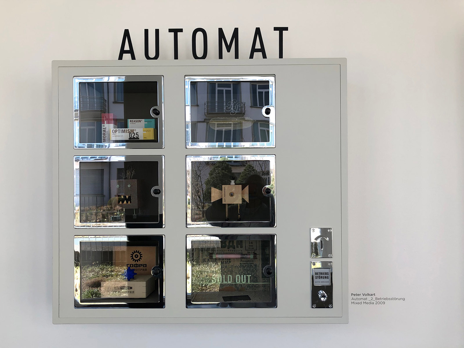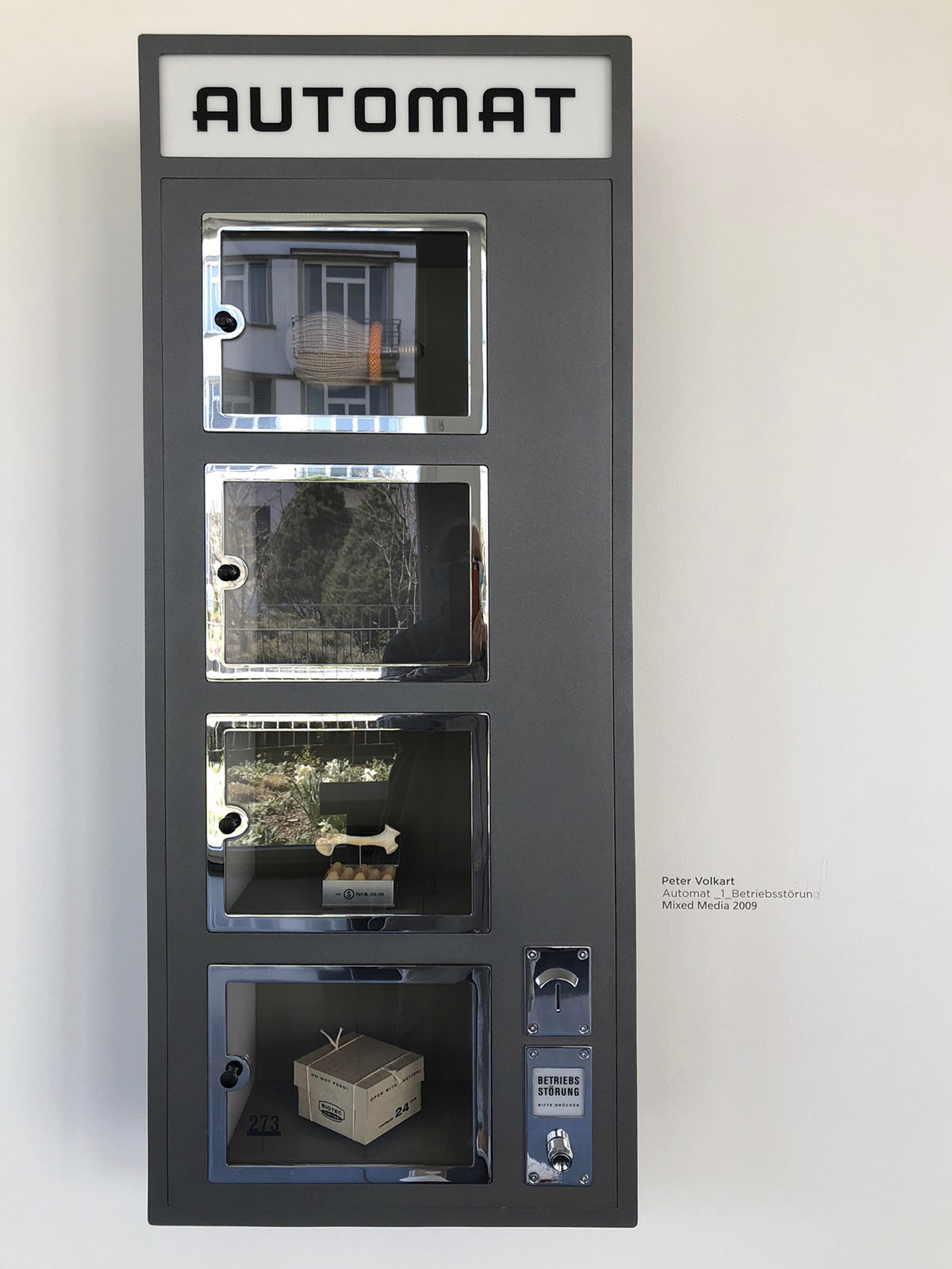 Mi-au atras apoi atenția scurilele instalații ale plasticianului și cineastului Peter Volkart. „Automate cu deranjamente” și alte asamblaje bizare aparent serioase, dar la o privire mai atentă, ciudate, curioase, excentrice.