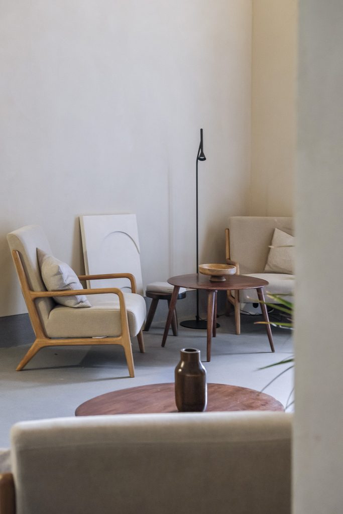 Pentru amenajarea interioară, am încercat să revizualizez identitatea brandului pentru București, combinând influențele mediteraneene, descrise prin culorile și texturile materialelor, cu cele brutaliste ale mobilierului de lemn, creat special, care se regăsește în tot spațiul. Prima zonă este centrată în jurul barului, de unde se pot vizualiza și comanda deserturile noastre, cafeaua de specialitate, un pahar de prosecco sau un cocktail delicios. A doua zonă este destinată petrecerii unui timp mai relaxant și face legătura cu terasa amenajată în curtea interioară a clădirii, cu multe plante și cu scaune confortabile și mese.