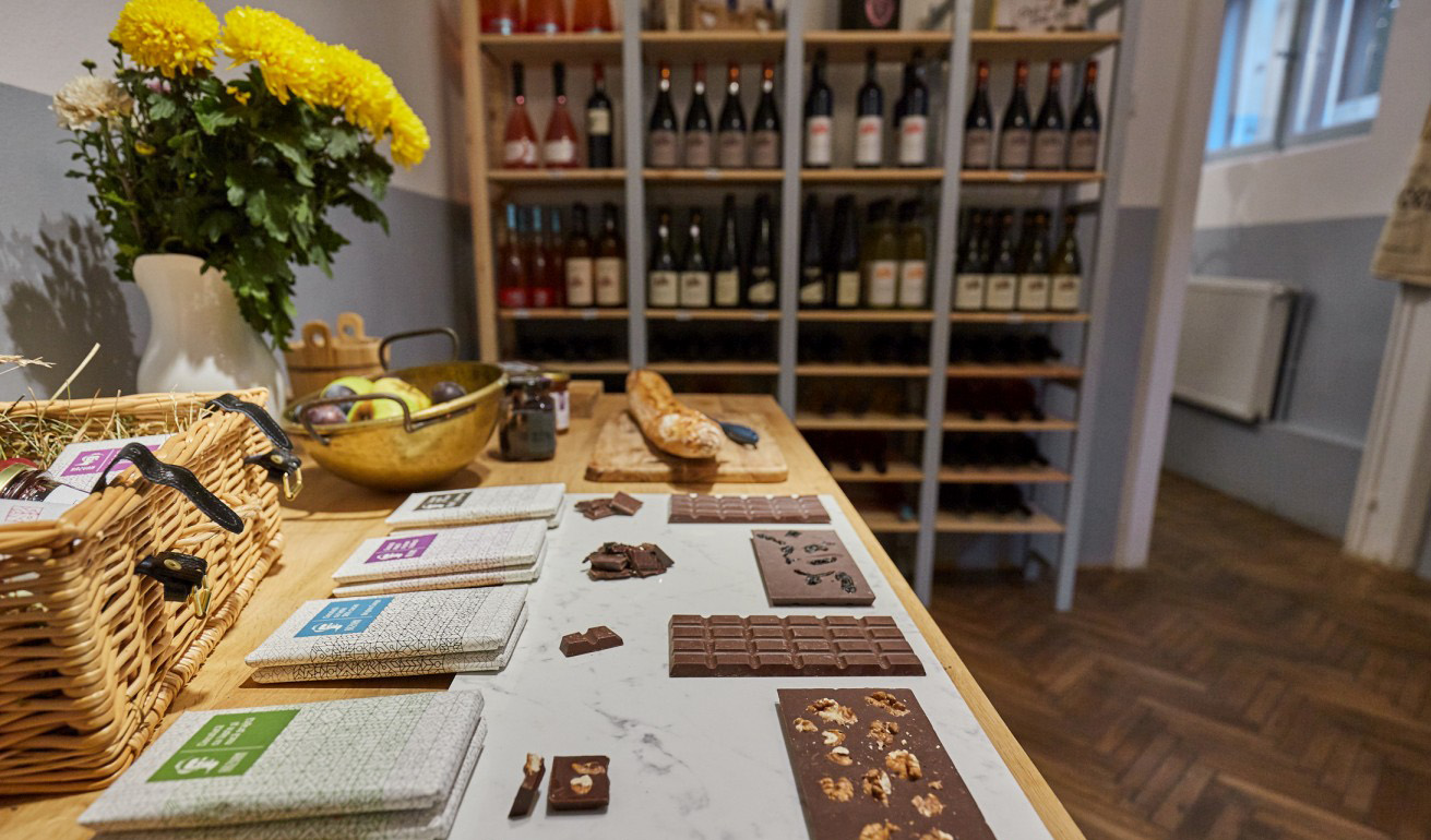 Prăvălia e tânără, a deschis-o vara asta: Eu m-am mutat în București de vreun an și jumătate și căutam un loc unde să pun produsele pe un raft. Să fie locul meu, oamenii să mă găsească ușor și… să ne simţim bine. Asta era ideea. Locul poate părea ascuns, în curtea asta, dar energia mi s-a părut bună din prima clipă, iar restul n-a mai contat. Am vrut să fie un loc călduros, care să reflecte gustul bun și simplitatea reţetelor mele, ne explică Răzvan.
