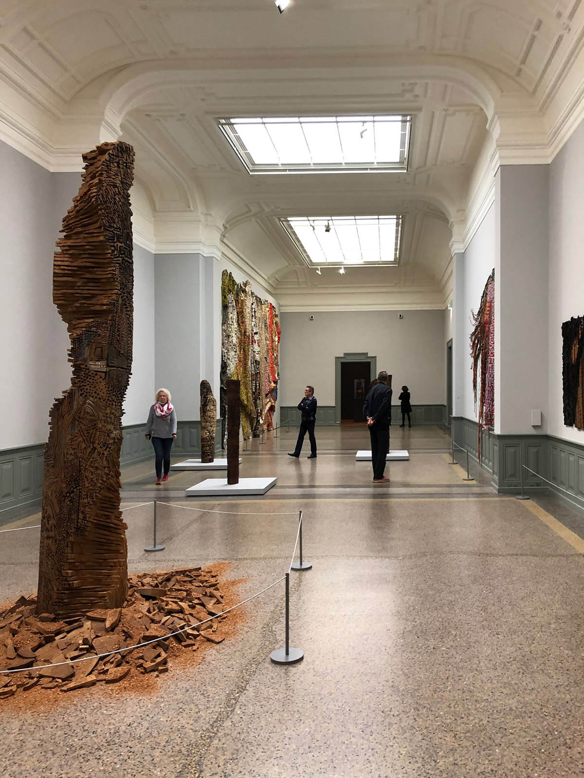 Îmi aduc aminte că, acum șase ani, la Metropolitan Museum în New York, fără să știu nimic despre el, privirea mi-a fost atrasă de la distanță de una dintre gigantele sale tapiserii. Curiozitatea din mine era chemată ca de un magnet fără să-mi explic de ce. De departe, piesa părea o pictură pointilistă abstractă cu străluciri mate; mai de aproape, lăsa vederii o plăcută textură mlădioasă, învăluitoare, atârnată în falduri generoase neregulate; împinsă de dorința de a afla mai mult, am observat în imediata vecinătate că „punctele” nu erau altceva decât banale capace și bucățele de metal de la sticle de băutură. Zeci de mii de fragmente, tăiate și modelate în dimensiuni relativ egale erau asamblate cu fir de cupru într-o copleșitoare structură maleabilă: mantaua unui rege din vremuri mitice.