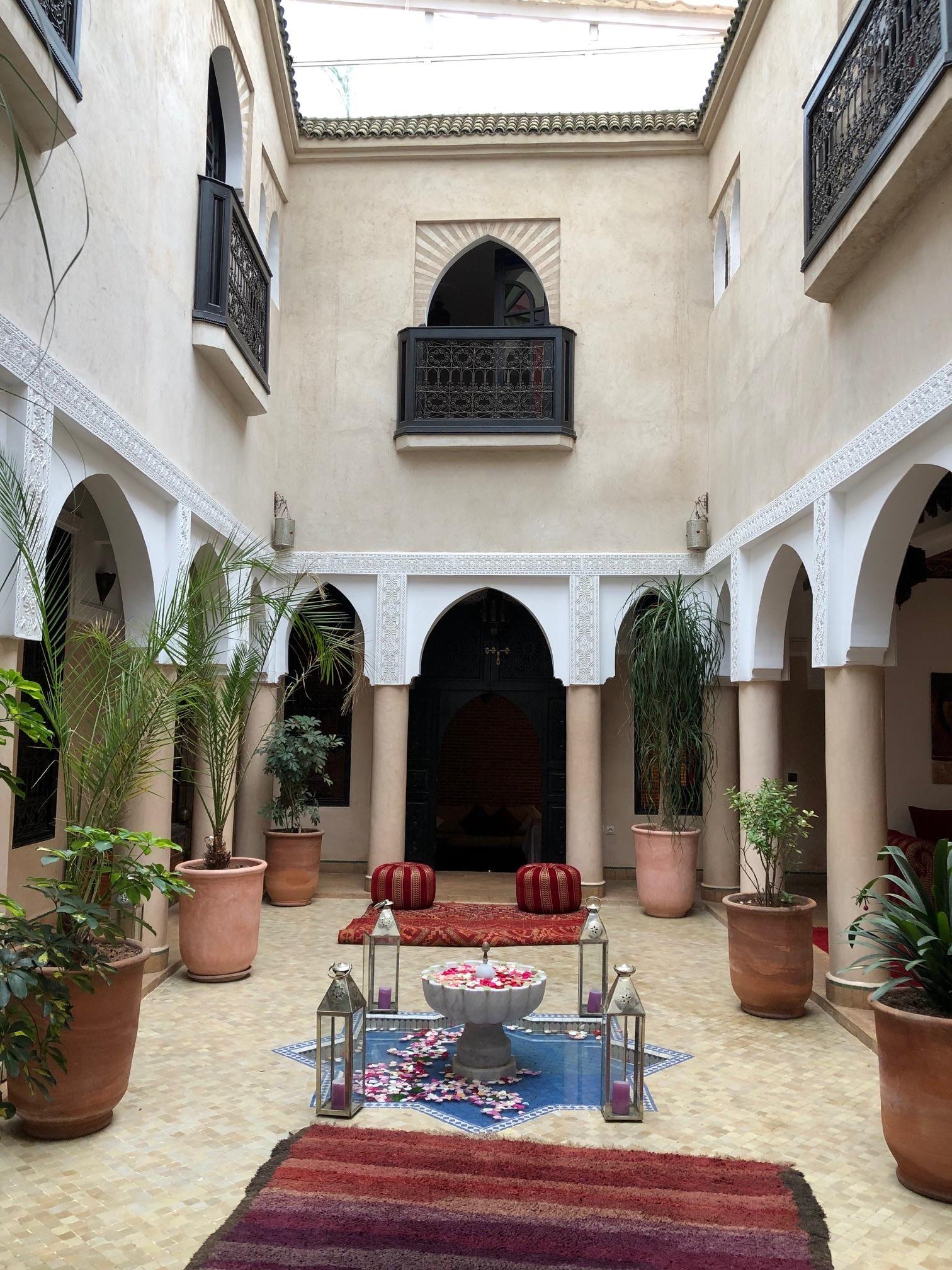 Riad este denumirea micilor hanuri-hotel în care Marocul își găzduiește de vreo două decenii încoace oaspeții dornici de culoare locală și contact personal. După declararea independenței Marocului în 1956, francezii s-au retras. În cartierele lor noi de atunci au migrat familiile marocane de nivel mediu, care au preferat confortul în locul caselor senioriale tradiționale din Medina. Orașul vechi a fost inundat de familii nevoiașe din zonele rurale. Deseori o singură casă era locuită de mai multe familii. Fără apă curentă și electricitate, Medina a devenit suprapopulată și insalubră. Calitatea construcțiilor și a minunatelor decorații din casele senioriale s-a deteriorat continuu până când, în anii ’90, numeroase articole despre Medina în presa europeană au atras atenția piețelor imobiliare în căutare de investiții exotice.