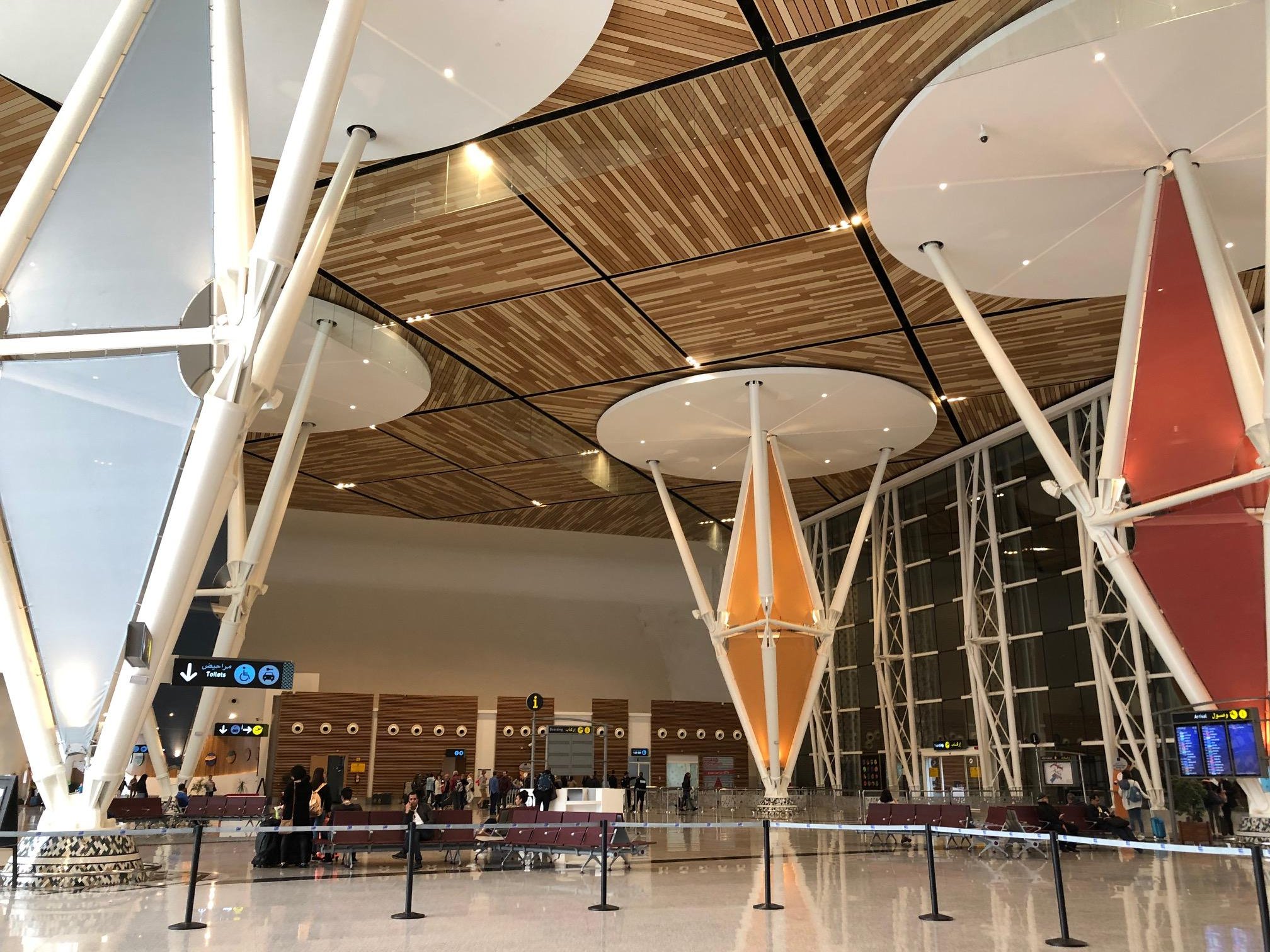 Marrakech-ul își întâmpină călătorii cu un aeroport gigantic, futuristic și bombastic.