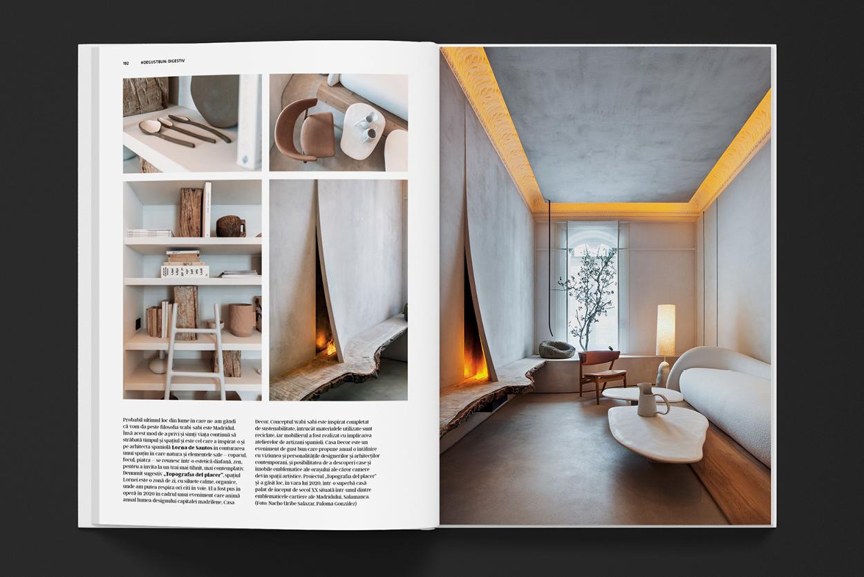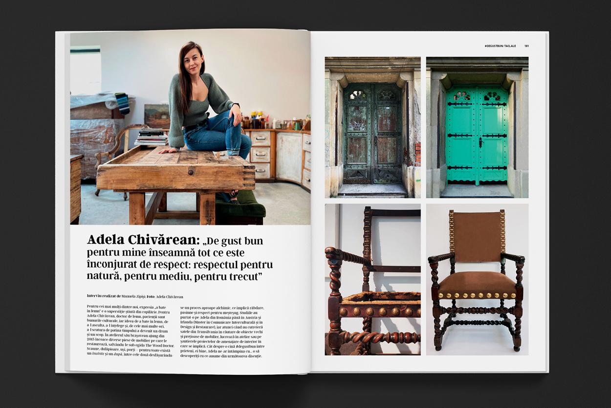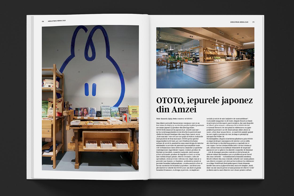 La final, rotunjim lectura prin tânăra secțiune #DeGustBun care hrănește toate simțurile: degustăm, stăm de vorbă, explorăm, visăm. În MENIUL ZILEI sunt prezentate două magazine altfel din București – OTOTO şi Zero Waste, alături de o inedită destinație de refugiu: Ursa Mică Glamping. Apoi, la TACLALE, am invitat-o pe Adela Chivărean – The Wood Doctor. Rubrica se încheie cu sugestia DIGESTIV, prin filosofia wabi-sabi, într-un salon de ceai japonez, o casă de lemn din China şi un proiect madrilen.