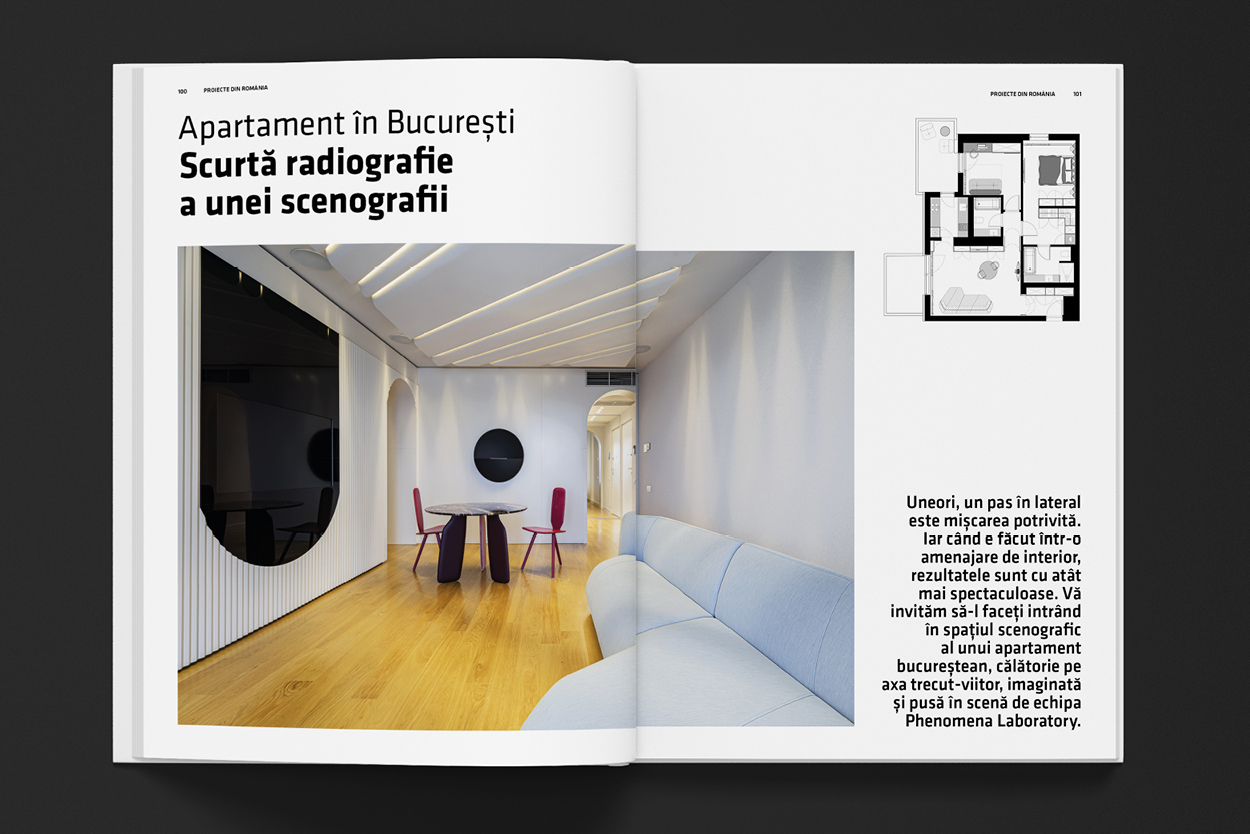 Ne concentrăm atenția, ca întotdeauna, și asupra celor mai interesante PROIECTE ROMÂNEȘTI recente de arhitectură: o clădire istorică de birouri de pe Calea Victoriei primește un chip contemporan (un proiect de Răzvan Bârsan+Partners) ♦ în inima unui vechi țesut urban din București, se inserează, cu subtile referințe la contextul local, un proiect remarcabil de locuințe colective, semnat echipa Cumulus ♦ un obiect sculptural misterios – sau o casă la malul Mării Negre, rezultatul colaborării a două echipe de arhitecți (Atât s-a putut & Oblic Studio) ♦ o capsulă spațial-temporală spectaculoasă, imaginată de Phenomena Laboratory în amenajarea unui apartament ♦ liniile minimalist-călduroase ale unei mansarde amenajate de arhitectul și scenograful Vlad Vieru ♦ nuanțe neutre și bogăție de lumină naturală într-un penthouse cosmopolit ♦ revizităm Mănăstirea Radu Vodă din București și Beciurile fostelor Case Domnești, care au fost consolidate, restaurate şi puse în valoare prin soluții moderne.