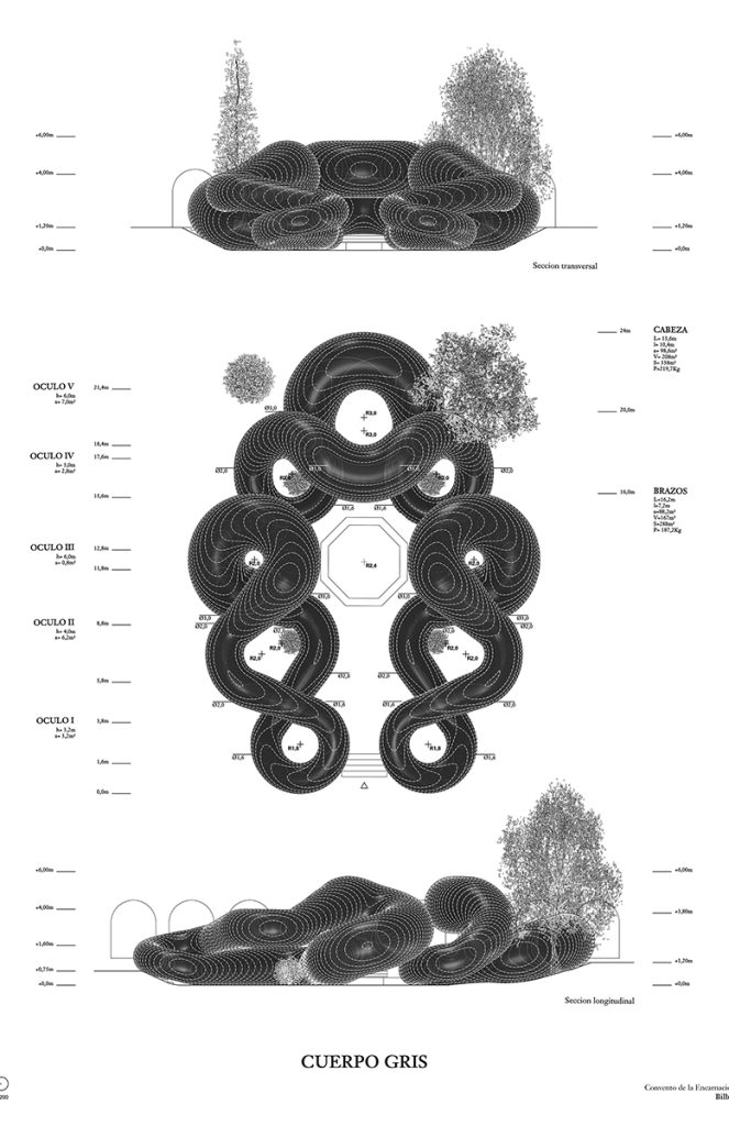 Muzeul de Artă Sacră din Bilbao funcționează, din 1995, în clădirea fostei mănăstiri La Encarnacion, înființată în 1514 de un grup de călugărițe dominicane și fiind, la vremea aceea, prima mănăstire de femei din capitala bască. Cu ocazia ediției 2022 a Festivalului Gau Zuria (Noaptea Albă), muzeul a găzduit una dintre cele 28 de intervenții artistice care au transfigurat orașul timp de 2 zile, pe 17 și 18 iunie – o colosală entitate organică care s-a înstăpânit pe curtea interioară a structurii istorice.