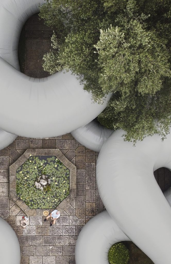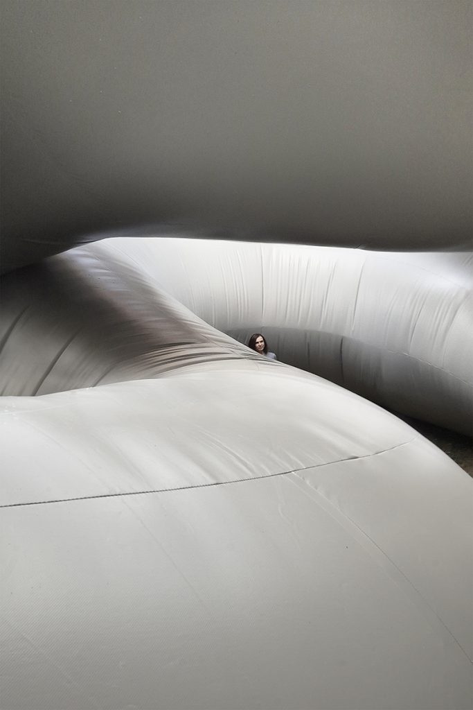Corpul moale, sinuos, nu numai că a perturbat limbajul ordonat al arcadelor și tectonica rigidă a structurii ci și experiența vizitatorilor, curtea interioară constituind zona de acces către sălile de expoziție. Pe rând imobilizați, conduși către spații intime, alungați sau, dimpotrivă, invitați să interacționeze tactil cu monumentalul volum-intrus, aceștia au fost provocați să negocieze un spațiu transformat radical de o prezență neașteptată – un spațiu devenit cu totul străin.