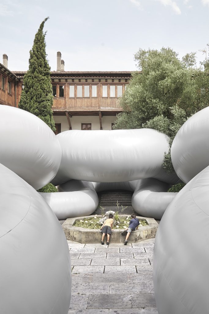 O entitate gri, înstăpânită temporar pe curtea interioară a Muzeului de Artă Sacră din Bilbao
