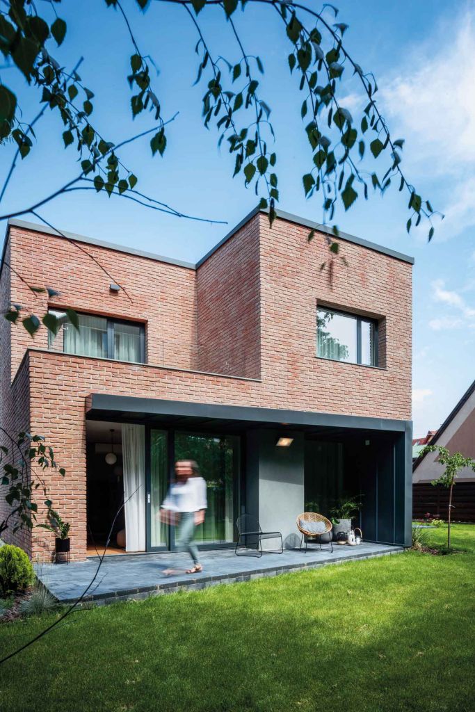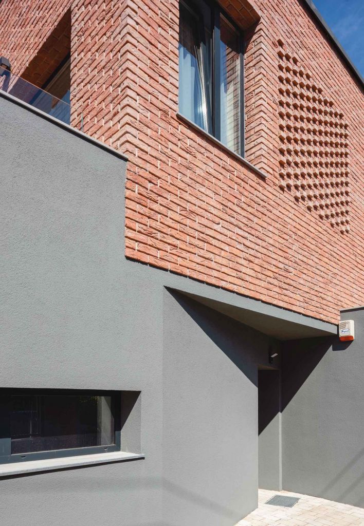 Alegerea materialelor, deschiderile mari și acoperișul-terasă comun urmăresc să ofere ansamblului un aspect atemporal, cu o estetică neo-modernistă şi finisaje distincte pentru fiecare dintre cele două locuinţe. Astfel, Casa A are o faţadă realizată parţial din cărămidă cu diferite modalități de dispunere – zonele unde cărămida este în relief alternând cu cele de trafor – şi detalii finisate cu tencuială gri, aceasta din urmă devenind, apoi, dominantă în cazul faţadei Casei B.