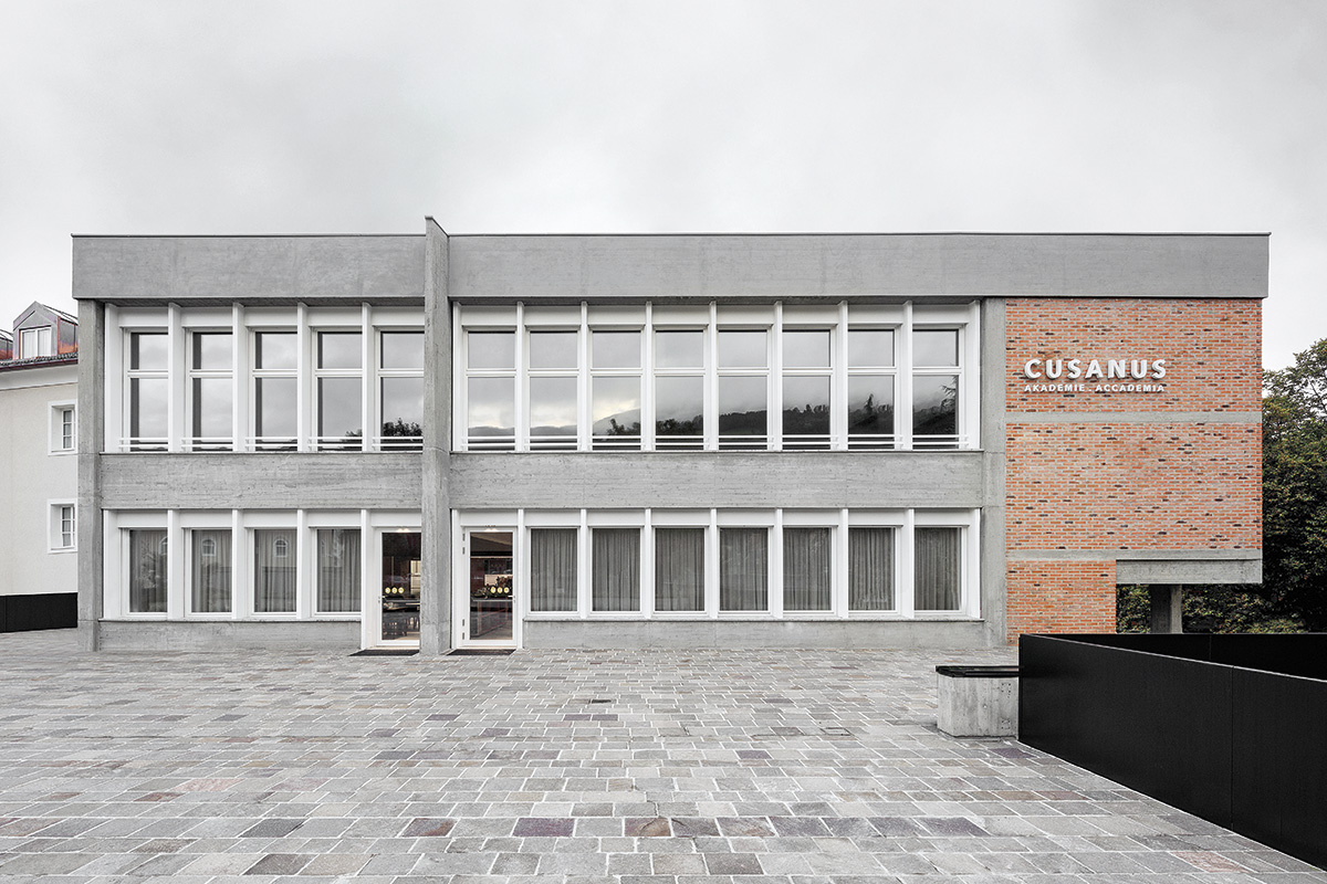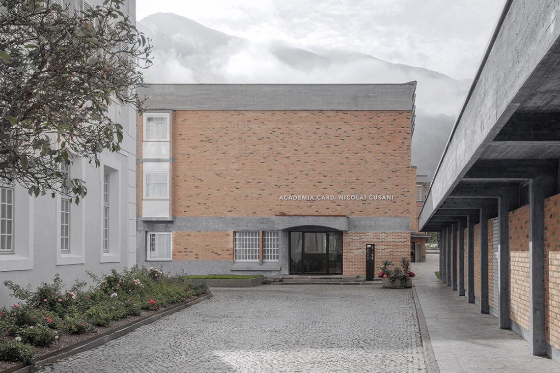 Academia Cusanus poartă numele lui Nikolaus Cusanus, cardinal și filozof dedicat umanismului renascentist, care în secolul al XV-lea și-a intersectat drumurile și ideile cu Leon Batista Alberti. Afinitatea între principiile lui Cusanus și Alberti despre concinnitas (armonie sau congruență între părți diferite ale unei clădiri) constituite un fundal teoretic substanțial peste care se suprapune materia construită după planurile lui Othmar Barth și, recent, intervenția celor de la MoDus Architects. Articularea spațiilor și limbajelor arhitecturale diferite elaborează o relație plină de semnificații între părți și întreg, trecând de la mimesis și interpretare, la contrast și complementaritate. Narațiunea întregului complex glisează astfel între exprimări vechi și noi, oferind o însemnată lecție de multa paucis — a spune multe cu puține cuvinte.