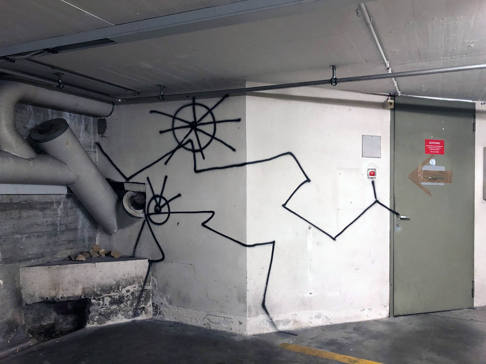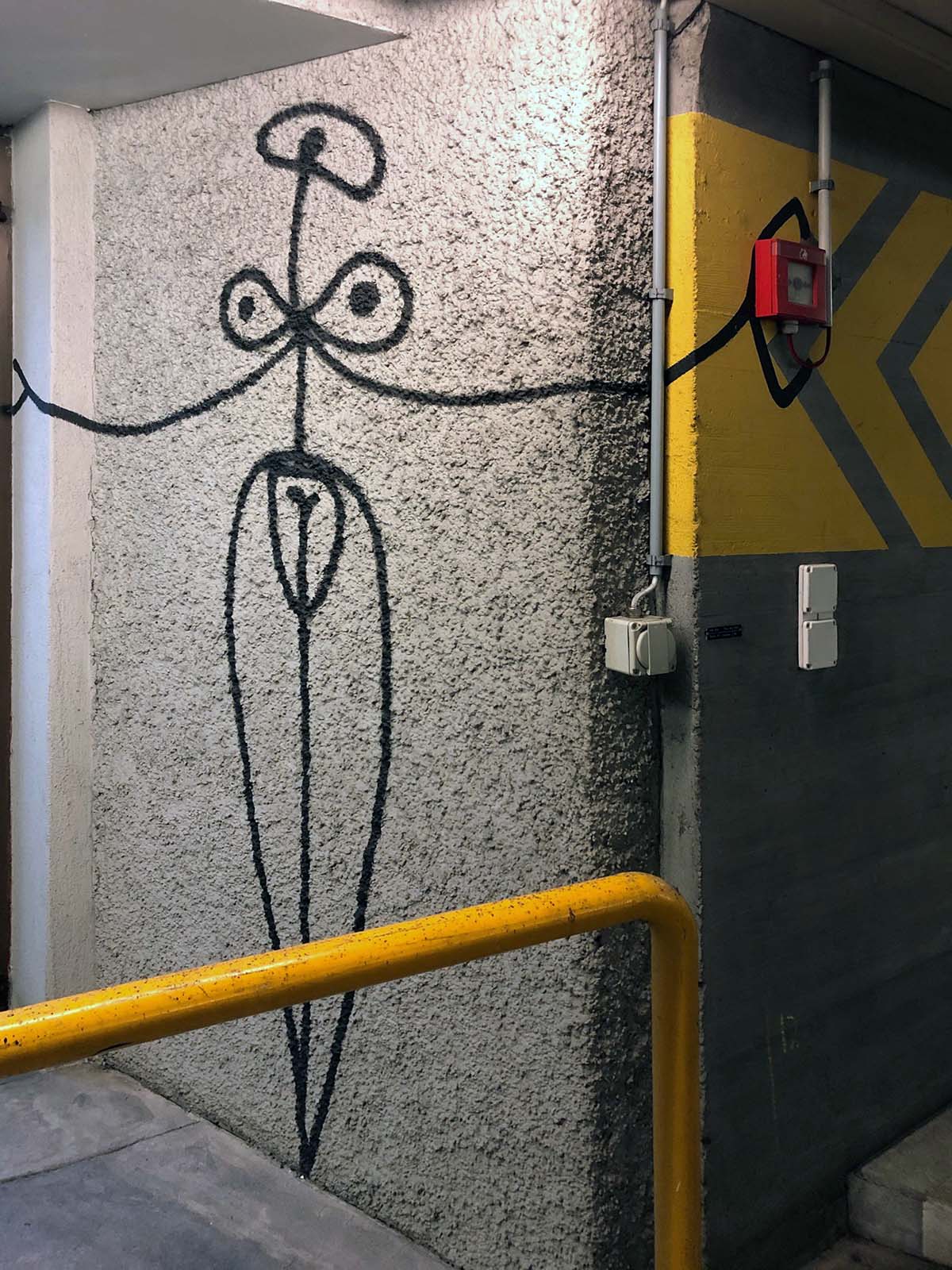 Harald Nägeli a împlinit anul trecut 80 de ani și poartă în spate amintiri aventuroase. Revista noastră i-a dedicat deja un articol (http://igloo.work/profetul-de-graffiti/). Artistul a atras atenția publică încă din anii ’70 ca un pionier al graffiti-ului. Atent observator și protector al dimensiunii umane, creativității și diversității, el s-a opus monotoniei arhitecturale din acea perioadă. Cu figurile sale imprimate pe ziduri a protestat împotriva betonării, uniformizării și depersonalizării galopante a peisajului urban. De-a lungul deceniilor, a imprimat în Zürich-ul natal precum și în alte orașe europene siluete caracteristice, care l-au făcut deopotrivă admirat și admonestat. Pentru ele a fost chiar și condamnat la 9 luni de închisoare. Perisabile și vremelnice, numeroase figuri ale sale au fost contestate, amendate și, firește, îndepărtate. Dar, pe măsură ce ochiul public i-a integrat stilul, iar genul artistic a căpătat recunoaștere, siluetele inconfundabile au devenit apreciate. De câteva decenii, două parcări din Zürich atrag atenția publicului prin plachete informative asupra câtorva originale ale artistului. Puțini știu însă că cea mai bogată, variată și anonimă colecție de lucrări a supraviețuit în subsolul Universității Tehnice din Zürich. Această neconvențională galerie de artă este accesibilă oricând, oricui. Ea mi-a permis să fotografiez ilustrațiile textului de față chiar în aceste timpuri de restricție.