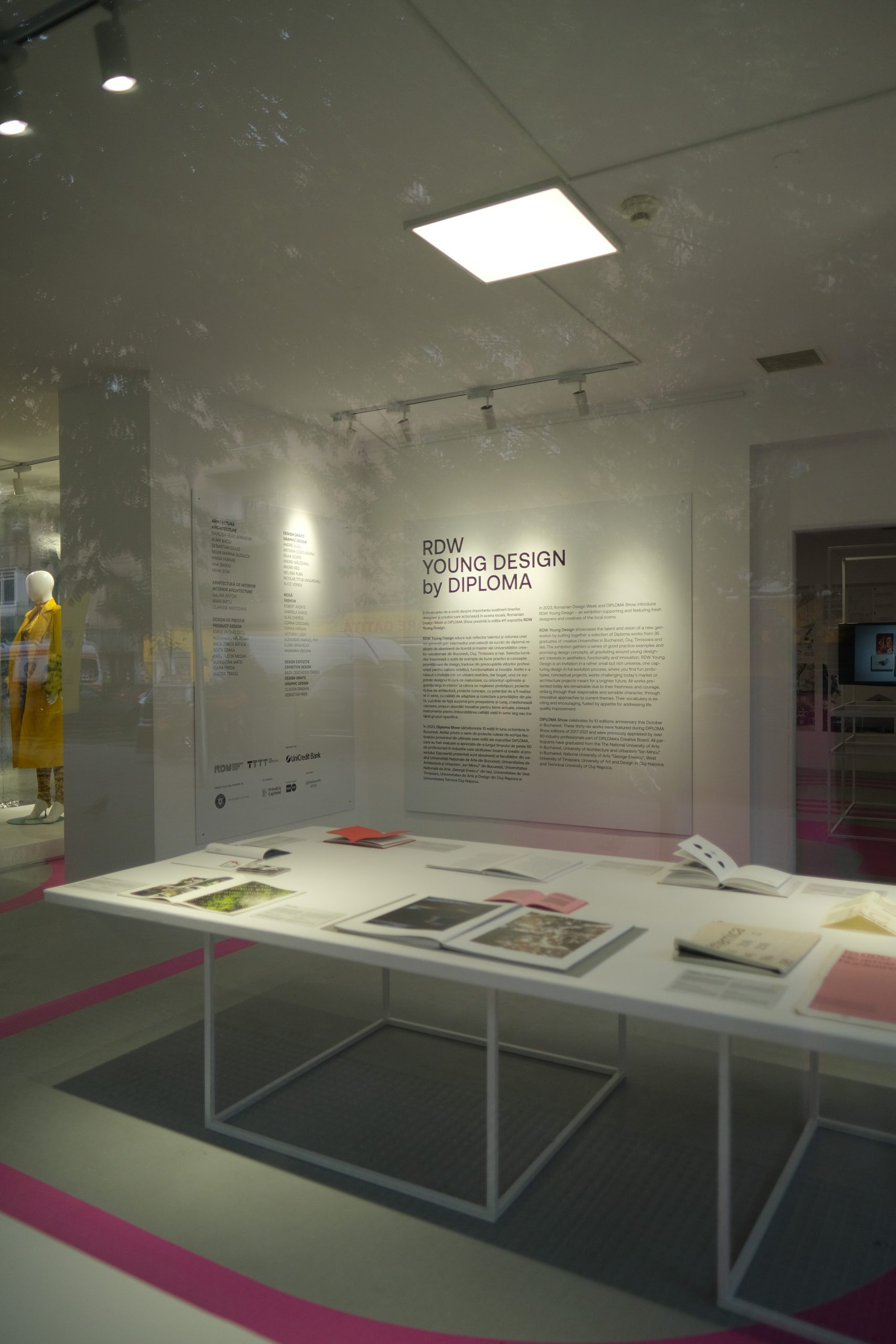 RDW Exhibition, expoziția centrală din Piața Amzei, a prezentat publicului larg 162 de lucrări de design și arhitectură, care au fost admirate de peste 40.000 de persoane, în clădirea din centrul Bucureștiului astfel reintegrată în circuitul urban. Designul RDW Exhibition a fost semnat de Attila Kim Architects.