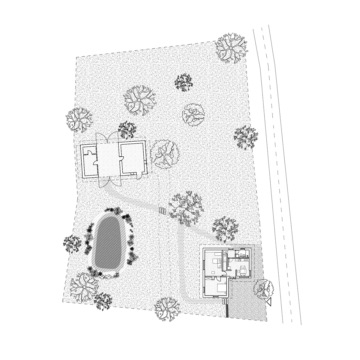 Folosind tehnici inițiale de montare a lemnului, imaginea exterioară se păstrează neschimbată, singurele modificări fiind cele de lărgire a golurilor ferestrelor locuinței, pentru o relația vizuală mai generoasă din interior către peisajul natural din vecinătate. În acest fel noile spații locuite ale casei se orientează fiecare spre câte un punct de interes, sau spre peisajul situat în jurul parcelei. În completarea materialităților inițiale, proiectul propune repararea și completarea soclurilor și a zidurilor din piatră, cu calcar provenit dintr-o carieră din vecinătate.Prin amenajarea terenului apele pluviale au fost direcționate gravitațional înspre o zonă umedă a parcelei, prin realizarea unui iaz cu pești și vegetație specifică.