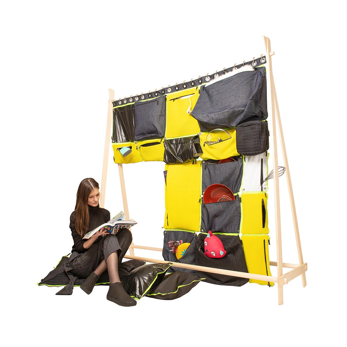 Ruumy, creație a Siminei Filat, este un perete arhitectural, modular, cu un design inovator, care poate fi combinat pentru a forma pereți despărțitori, dressing, articole de mobilier pentru casă sau chiar articole de îmbrăcăminte cu o ambalarea rapidă și ușoară. Designul permite transformarea dressingului într-un articol de îmbrăcăminte, geantă sau în obiecte de casă. Realizat cu grijă din material moale, Ruumy este un dressing modular în formă de puzzle cu până la 10 utilizări extrem de funcționale. Produsul îi ajută pe nomazii contemporani – pe cei care se deplasează frecvent – să muncească și să transporte cu ușurință o parte din universul lor ambulat.