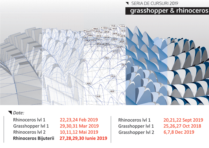 idz arhitectură organizează Seria de cursuri Rhinoceros și Grasshopper/2021. Această serie de cursuri își propune să ofere tinerilor arhitecți, designeri, studenți, ingineri și artiști oportunitatea de a-și completa abilitățile și cunoștințele în domeniul modelării tridimensionale digitale. Rhinoceros de la McNeel & Associates este unul dintre cele