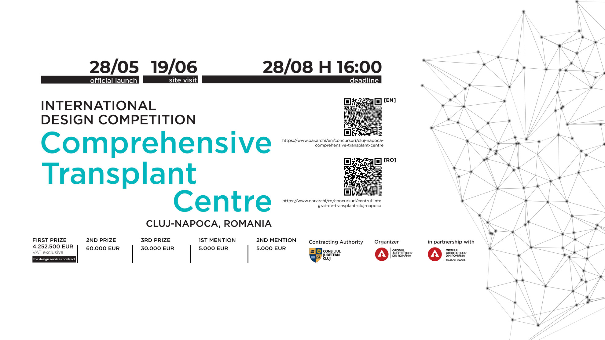 Ordinul Arhitecților din România, Filiala Transilvania a Ordinului Arhitecților din România și Consiliul Județean Cluj anunță lansarea Concursului Internațional de Soluții ”Centrul Integrat de Transplant Cluj-Napoca”. Scopul acestui concurs este de a selecționa, în vederea atribuirii contractului de proiectare, cea mai bună soluție pentru un Centru Integrat