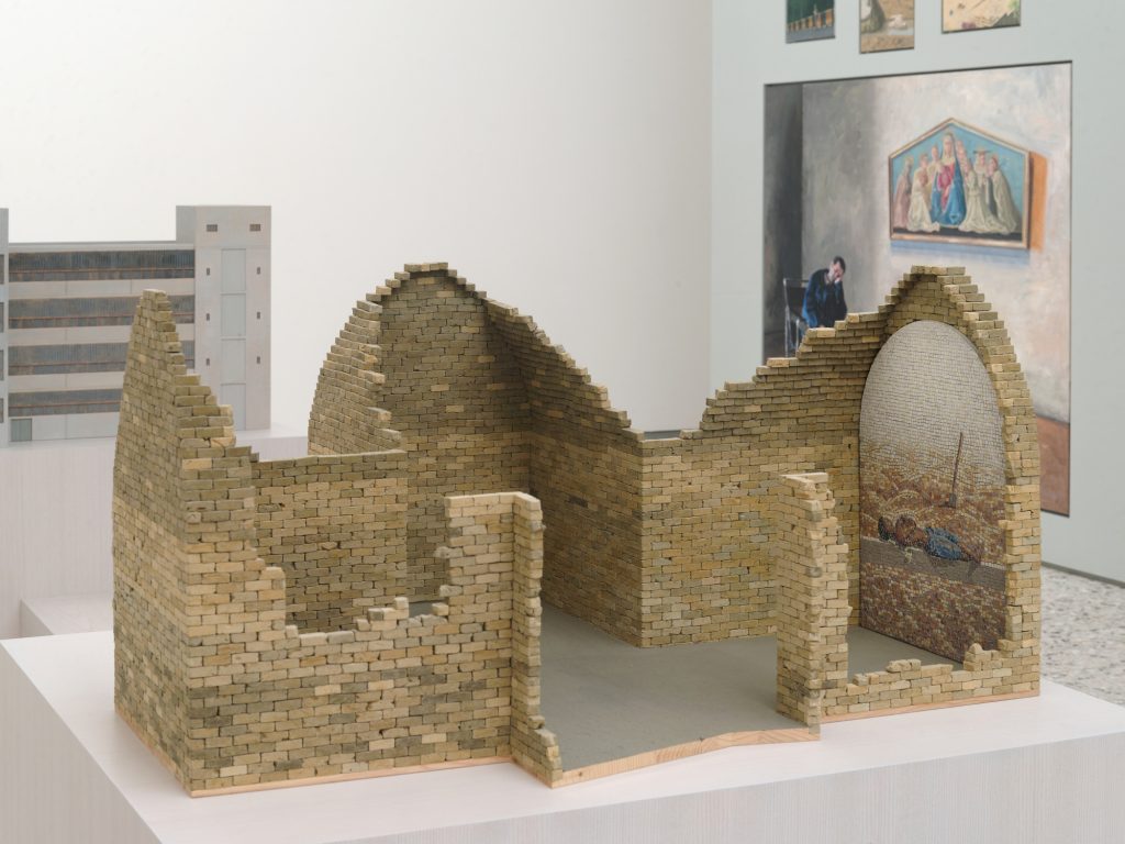 În expoziția mea din Pavilionul României de la ediția 2024 a Bienalei de la Veneția, prezint câteva machete arhitecturale care au inserate pe calcane sau în interior mozaicuri.