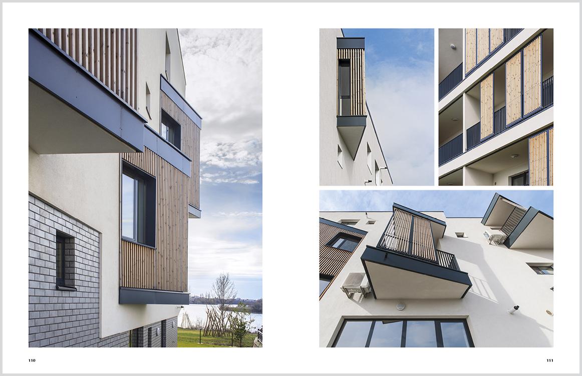 • Locuințele colective propuse de ADNBA au un regim de înălțime scăzut și un înalt confort urban. Arhitectura lor aduce un omagiu modernismului, accentuează traveele constituente într-o cheie de lectură contemporană, introducând decalaje volumetrice pe două direcții.