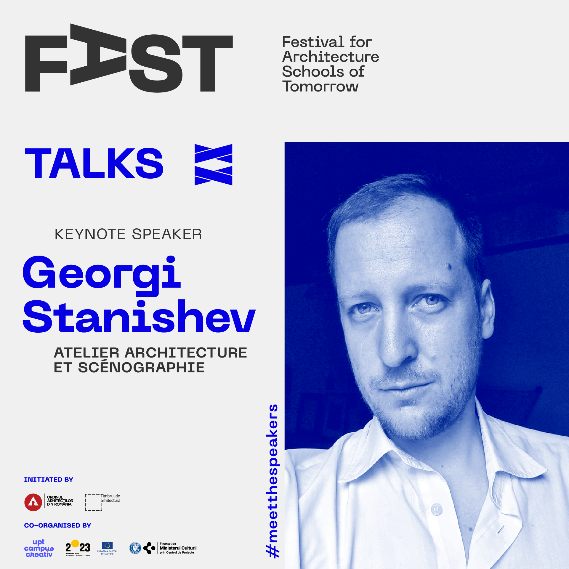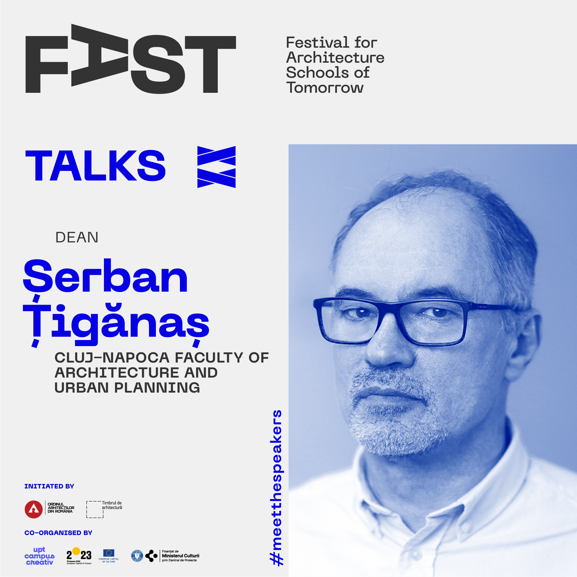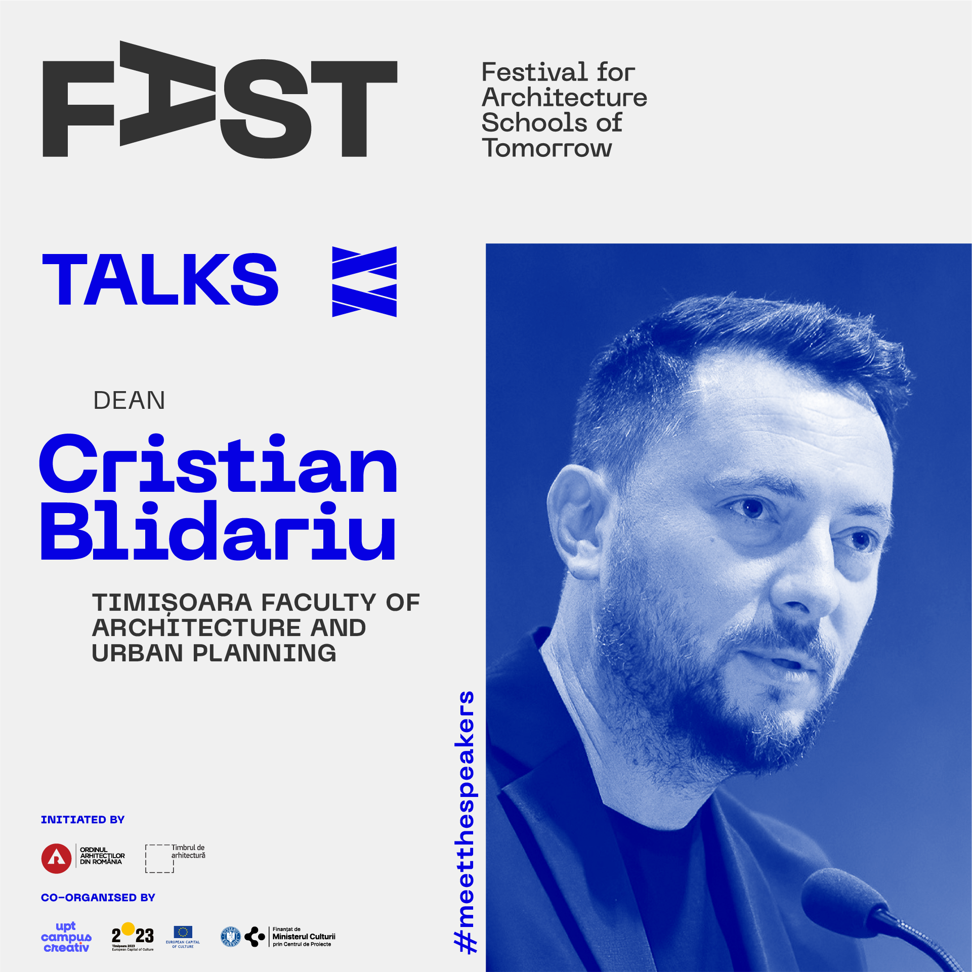 FAST: Festival for Architecture Schools of Tomorrow este  dezvoltat de Ordinul Arhitecților din România, finanțat prin timbrul arhitecturii, găzduit și coorganizat în 2023 prin proiectul UPT Campus Creativ.