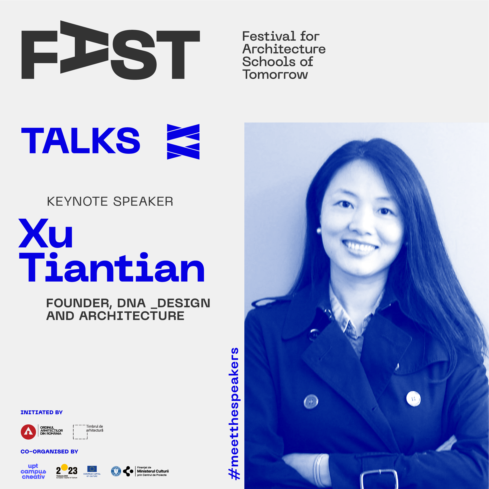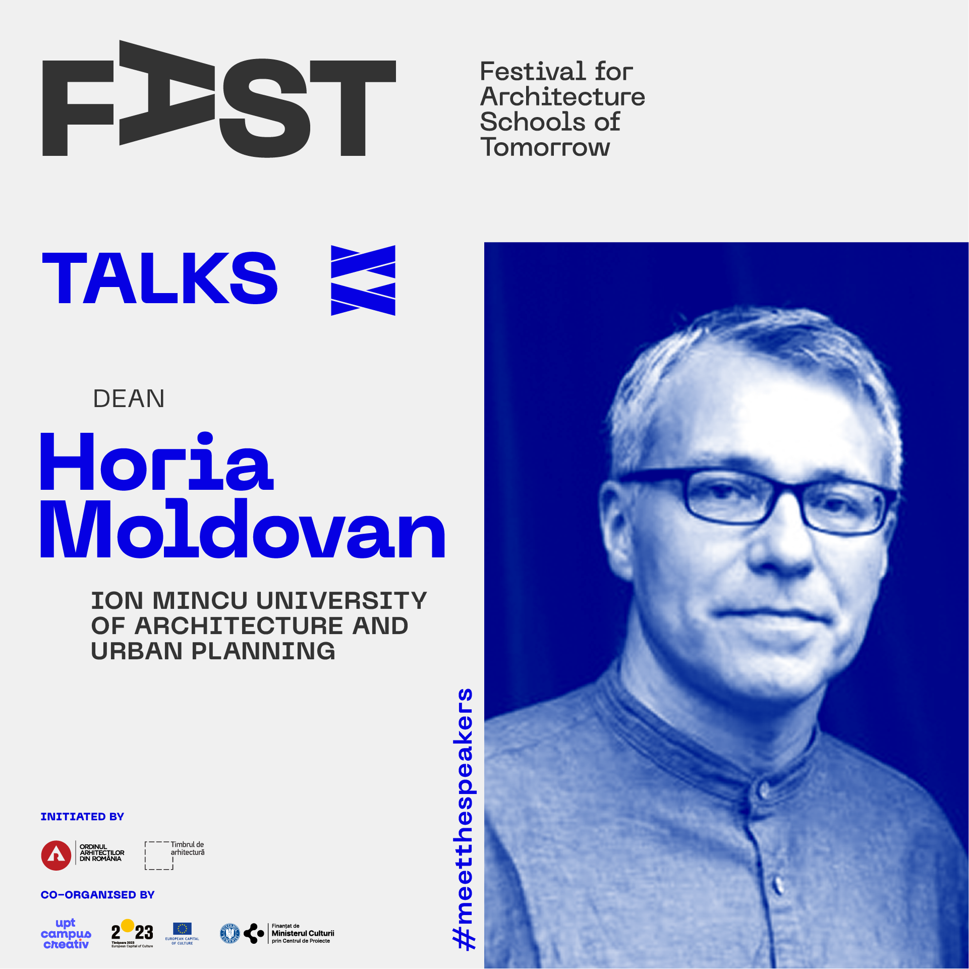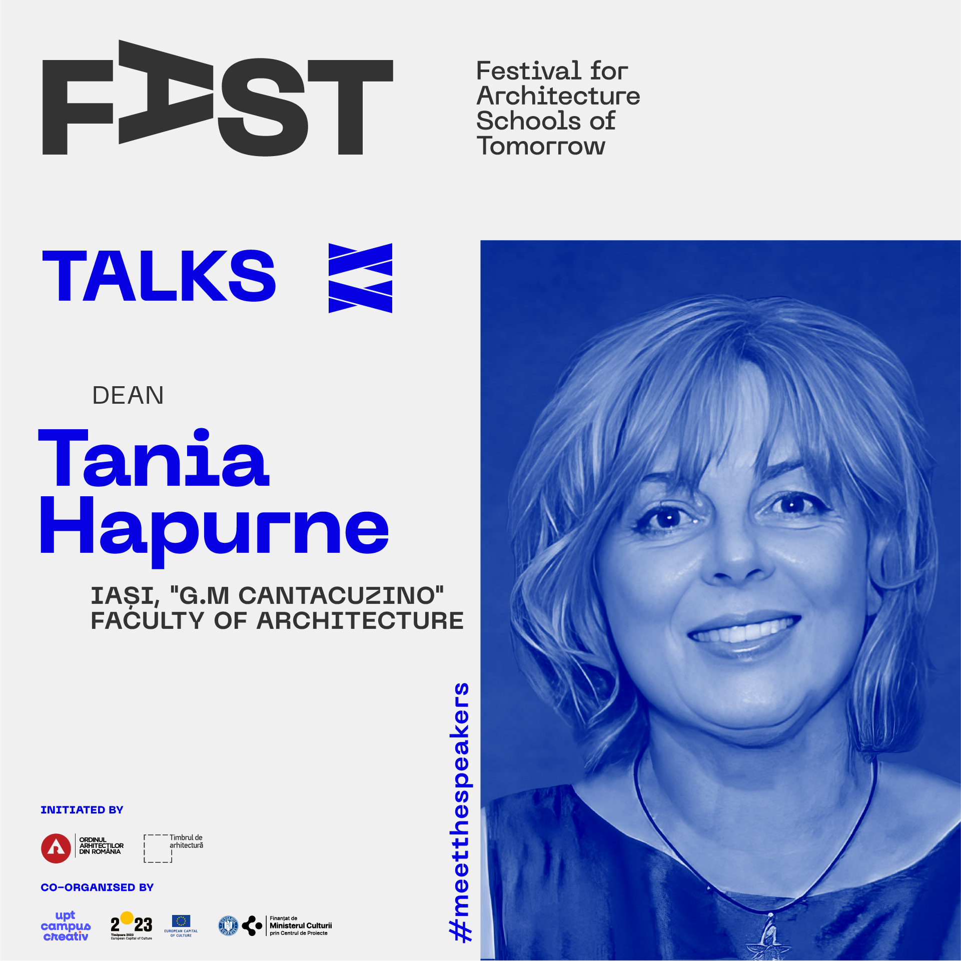 FAST: Festival for Architecture Schools of Tomorrow este  dezvoltat de Ordinul Arhitecților din România, finanțat prin timbrul arhitecturii, găzduit și coorganizat în 2023 prin proiectul UPT Campus Creativ.