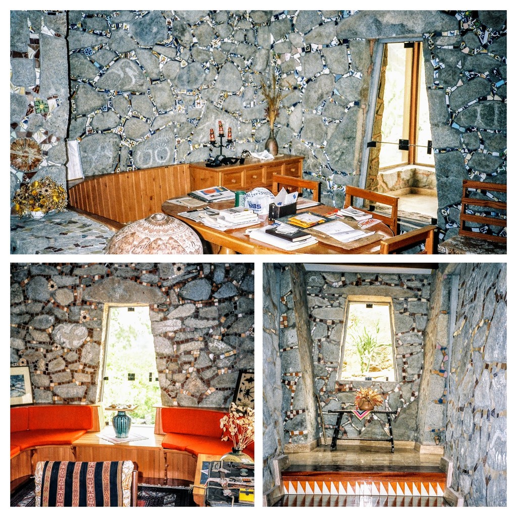 În următorul colaj se pot vedea trei încăperi ai căror pereți de piatră naturală sunt la vedere, fără niciun fel de finisaj, analog cu suprafețele exterioare ale complexului, așa cum se poate observa în imaginea anterioară.