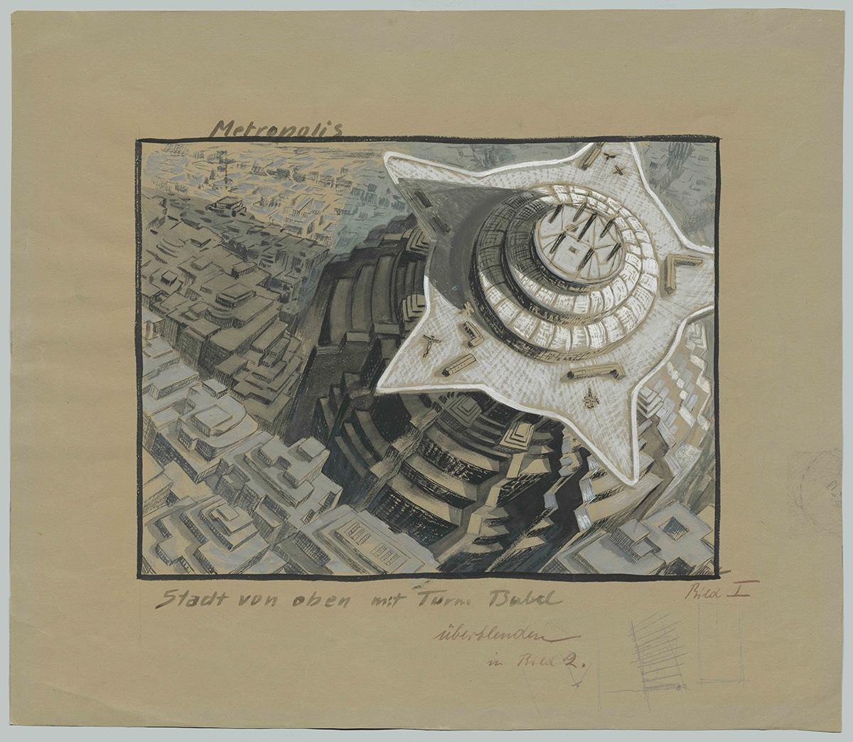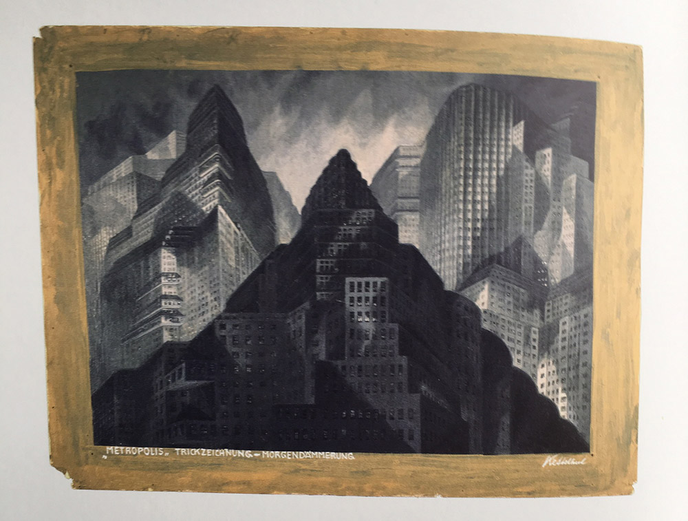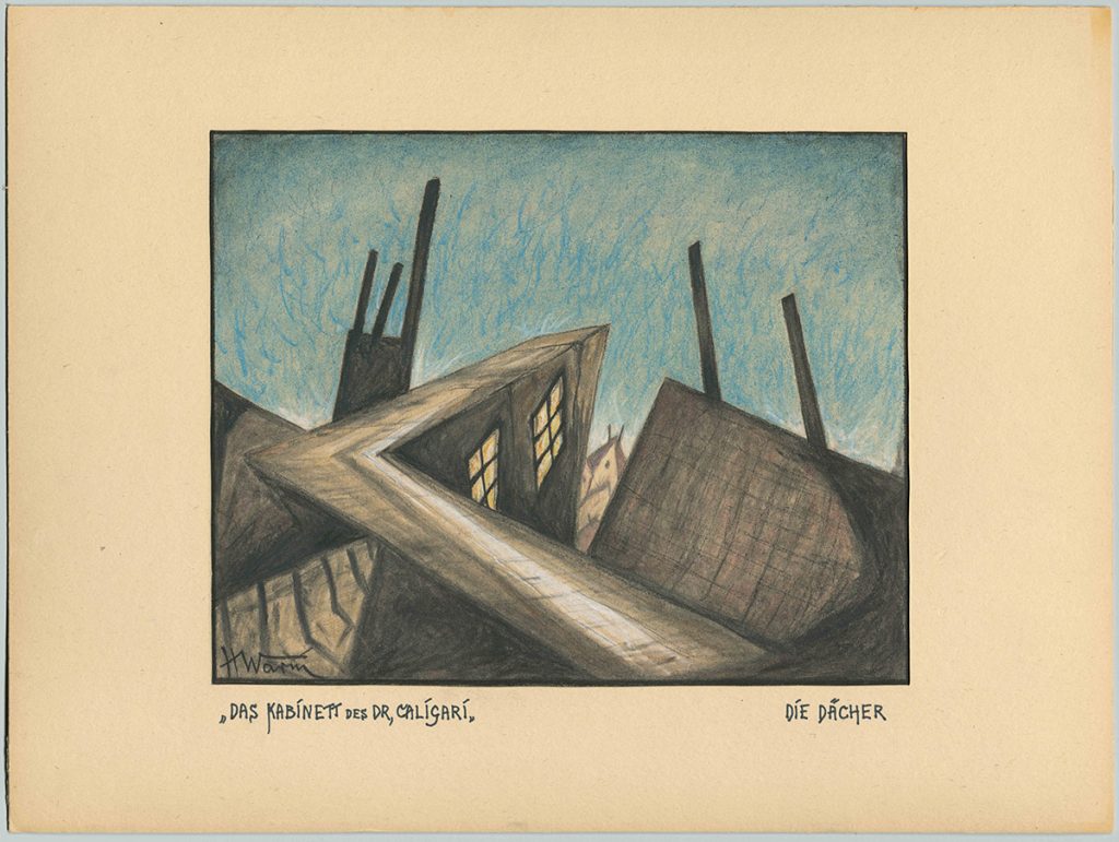 Imaginile și informațiile de mai sus fac parte din expoziția German Film Architecture 1918-1933, care a avut loc în Berlin la Tchoban Foundation, în 2019. Tchoban Foundation. Museum of Architectural Drawing a prezentat atunci o selecție a desenelor și schițelor care au stat la baza scenografiei inconfundabile a filmului german experimental din anii 1918-1933. Vizitatorii au putut vedea lucrări de Emil Hasler, Robert Herlth, Otto Hunte, Erich Kettelhut, Hans Poelzig, Franz Schroedter și Hermann Warm pentru filmele Cabinetul Dr. Caligari, Golem, Metropolis, Nibelungii, Îngerul albastru și alte capodopere ale epocii. O expoziție destul de săracă în text (și informații despre context), însă lucrările expuse, puțin cunoscute în sine, sunt îndeajuns de grăitoare și de impresionante.