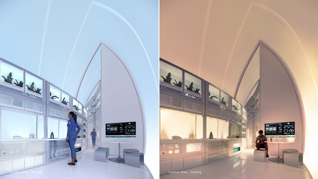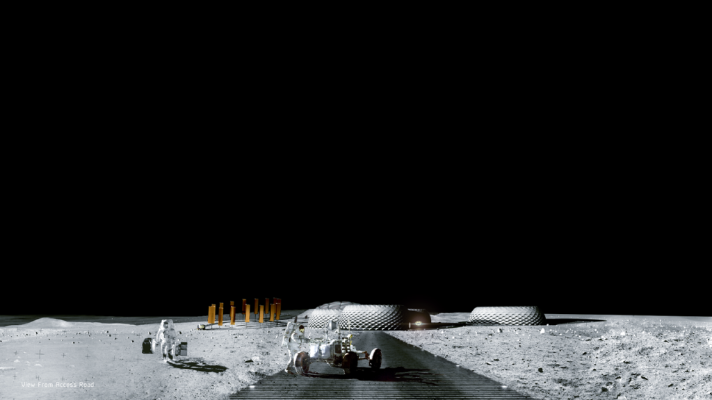 Rețeaua de nervuri exterioare rigide poate fi umplută cu regolit, având avantajul suplimentar de absorbție a radiației solare intense (de până la 100 de ori mai mare decât pe Pământ, potrivit lui Ingels) și de a atenua impactul mini-meteoriților care lovesc suprafața lunii în fiecare an. Masterplan-ul realizat de BIG dezvăluie o infrastructură hipercomplexă (cum altfel?) de drumuri, piste de aterizare și „garaje” pentru vehiculele selenare, megastructuri pentru colectarea și prelucrarea materialelor de pe Lună și, desigur, habitate pentru astronauții care vor privi Pământul de la 200.000 de mile depărtare.