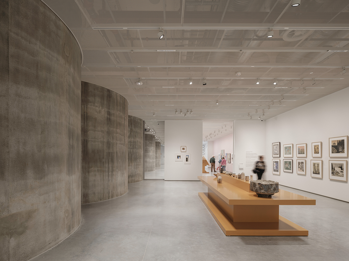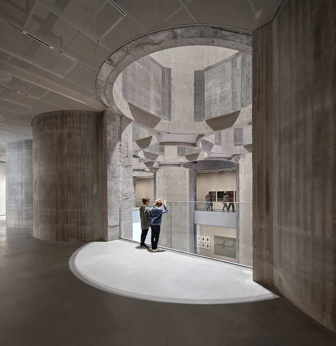 Spațiul atriumului integrează nucleul de circulație ce direcționează vizitatorii către galerii, majoritatea găzduite în două extensii adiacente, una nou construită, iar cealaltă o replică a unui volum original care a trebuit să fie reconstruit din cauza degradării avansate. În interior, decupajele prevăzute în zidurile galeriilor oferă vederi către atrium-ul central, ajutând vizitatorii să se orienteze. Împreună cu golurile din pereții exteriori, ele deschid clădirea industrială, transformând-o într-un loc pentru oameni.