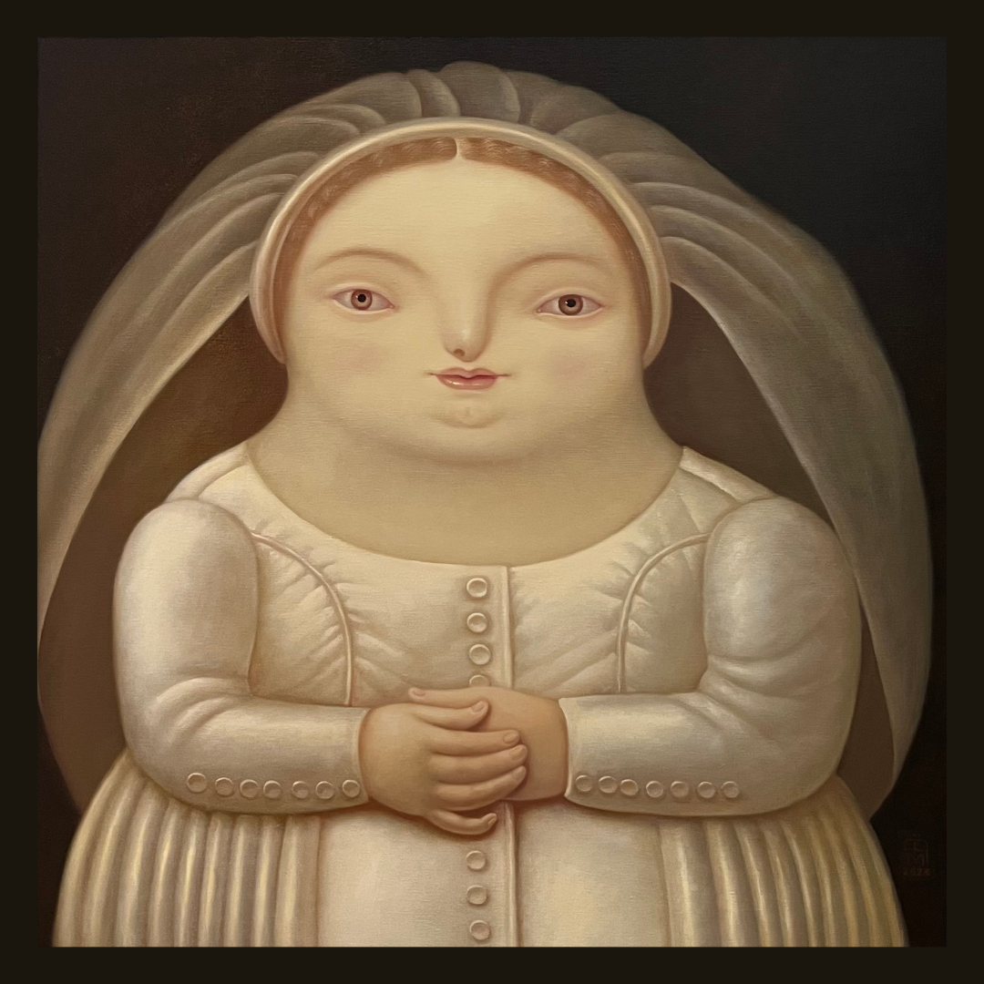 Personajele Mihaelei Ghiga Atomei au de cele mai multe ori trăsături exagerate, ce amintesc de cele ale lui Botero, dar care provin din sinele interior al artistei. Ea explica: “Prefer liniile curbe pentru formele lor rotunde”. Fiecare tablou spune o poveste dar “fiecare spectator va avea totuși propria lui poveste în funcție de cultura sa, de zona geografică și socială din care provine și de starea sufletească din acel moment. Nu este intenția mea sa schimb această poveste. Eu o am pe a mea”.