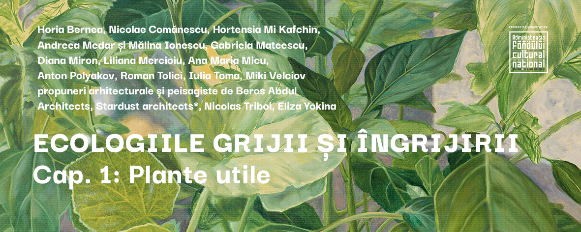 Plantele asigură respirația ecosistemului din care facem parte. Învelișul viu al scoarței terestre a fost transformat în resursă aparent nelimitată, exploatată pentru supraviețuirea umanului. Taxonomiile botanice actuale se regăsesc amestecate în această micro antropologie vizuală a plantelor uzuale, imaginată în relație cu grija pentru natură și îngrijorarea în fața ecocidului actual. Expoziția «Ecologiile grijii și îngrijirii» devine un spațiu de reflecție, învățare și dezvățare a relațiilor omului cu natura vegetală. Este îngrijirea plantelor un răspuns pentru îngrijorarea în fața crizei climatice?” Valentina Iancu, curatoare a programului Plante utile, otrăvitoare, ritualice sau afrodisiace