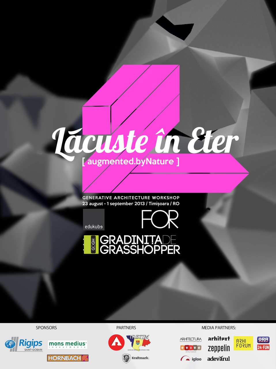 În perioada 23 august-1 septembrie 2013 se va desfăşura workshopul „Lacuste în eter 2- Augmented by Nature”. Scopul workshopului este de a familiariza participanţii cu metode de proiectare parametrică şi generativă, cât şi de a stabili o punte interdisciplinară între ştiinţele naturale şi design.