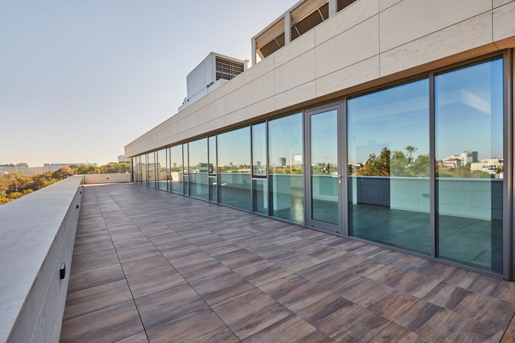 Stratul intermediar de sticlă este Guardian® ExtraClear, iar pe suprafața interioară s-a folosit sticla termoizolantă Guardian ClimaGuard® care ajută la îmbunătățirea eficienței energetice. Această sticlă asigură o transmisie a luminii de 65% și un factor solar de 35%, ceea ce înseamnă că sticla permite în interior o lumină naturală din abundență, în timp ce blochează o cantitate mare a căldurii. În plus, sticla SunGuard SN 70/35 contribuie la reducerea nevoilor pentru lumina artificială și oferă o combinație excelentă între protecția solară și izolarea termică eficientă.