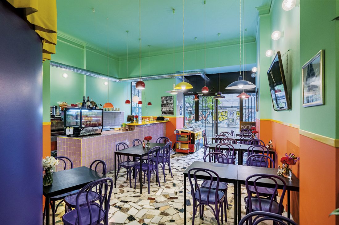 Acum că prezentările au fost făcute mai avem de trecut în revistă decorul și mâncarea. Amenajarea noului Balls a păstrat liniile designului tonic cu tușe balcanice și veselie color-block trasate în sediul inițial de arh. Laura Paraschiv (Circa 1703-3071), bucurându-se de noul spațiu de desfășurare considerabil mai mare. Spiritul locului a fost inspirat completat cu recolta multor peregrinări de weekend prin târgul de la Valea Cascadelor: bibelouri, pisici care atrag belșugul etc. Cât despre meniu, adevărul e că face toată experiența, iar explorarea e generoasă și propune arome din toate cele patru zări: de la America, la Dobrogea, cu sosuri marinate sau ciulama, plus nelipsitul și atât de reconfortantul piure de cartofi. Există și combinații vegetariene și ce ar fi musai de încercat este reinterpretarea salamului de biscuiți întrupat într-o chiftea cu halva.