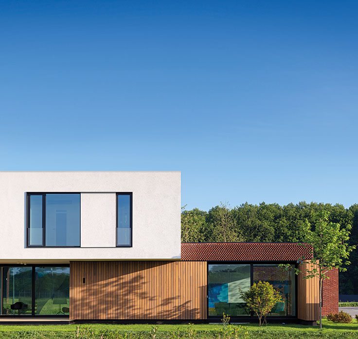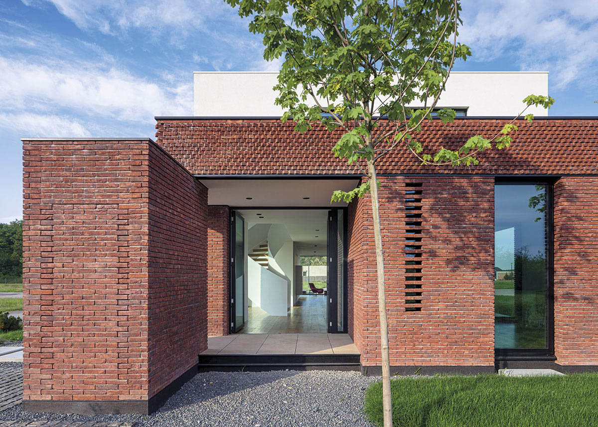 Zonele servante ale casei sunt aşezate în lungul unui perete portant, placat cu cărămidă, care se dematerializează spre capătul dinspre grădină printr-un trafor.