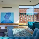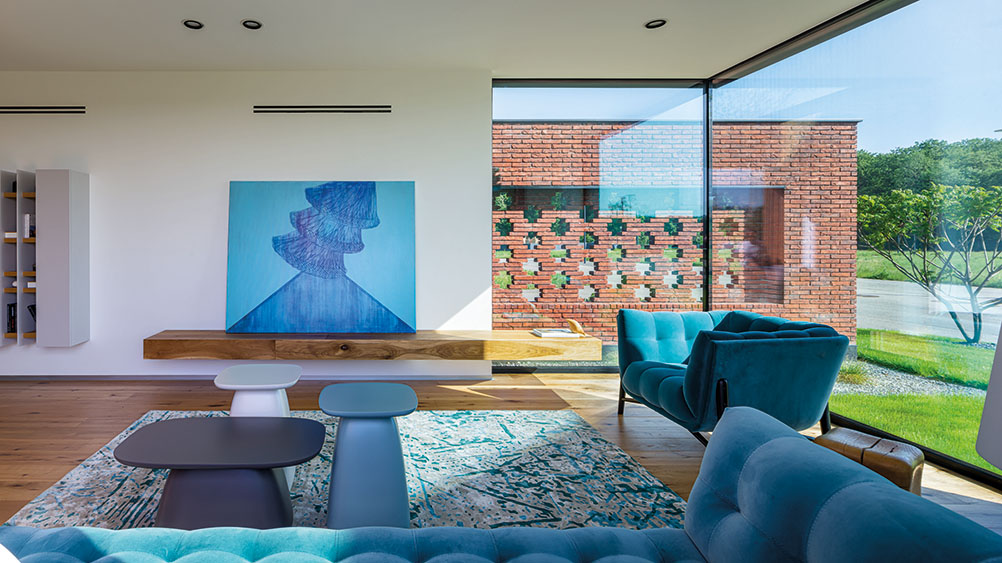 Locul alb şi înalt devine şi mai transparent datorită prezenţei a doi pereţi vitraţi opuşi. Deschideri de sticlă generoase, uneori pe lungimea unui perete întreg cu toată înălţimea liberă, aduc peisajul înăuntru, dar şi deschid spaţiile către exterior. Este cazul zonei de discuţie, un spaţiu deschis, transparent, dar şi intim, unde limita interior-exterior aproape că dispare.